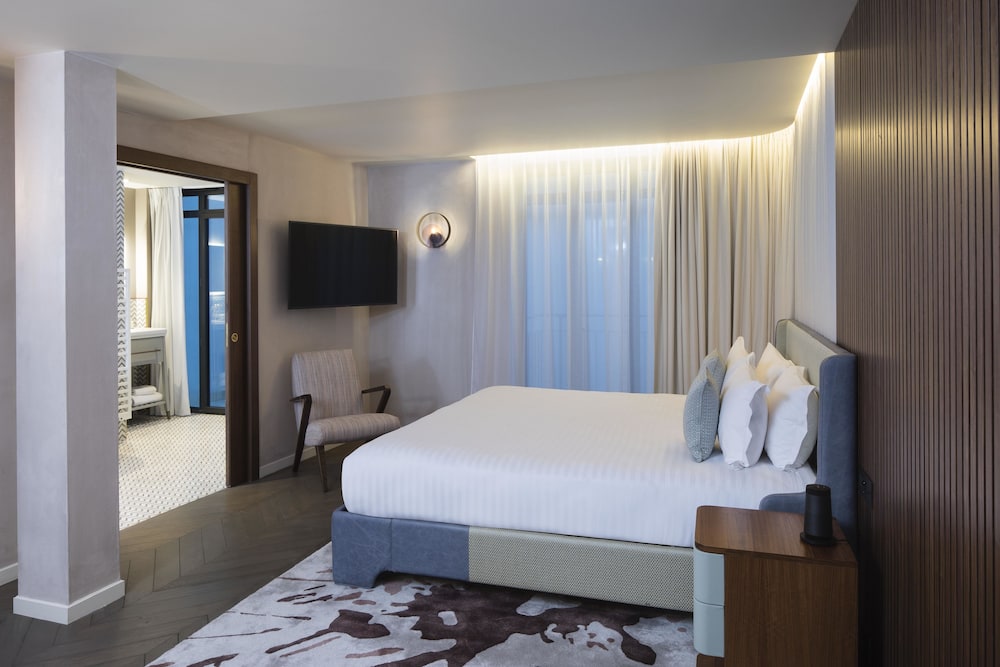 5 star hotel in a quieter, safe neighborhood, excellent vicinity to public transportation, French Farmers market and boulangerie, as well as other good restaurants. Hotel staff was friendly, supportive and responsive. Room was comfortable, offering all amenities: Chromecast TV, shower and bathtub combo, balcony, room safe, fridge, and Nespresso machine with complimentary water and fresh towels everyday. Hotel featured a full restaurant and bar, and a very top of the line AC unit in the room which kept it nice and cool during the hot summer days we were walking around Paris. Would highly recommend and would stay here again.