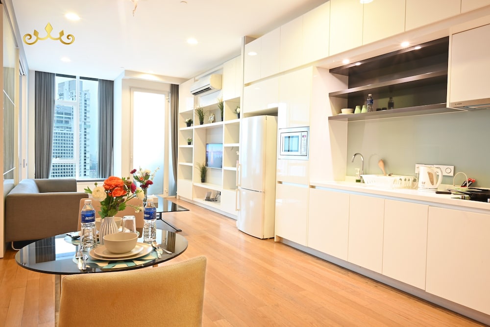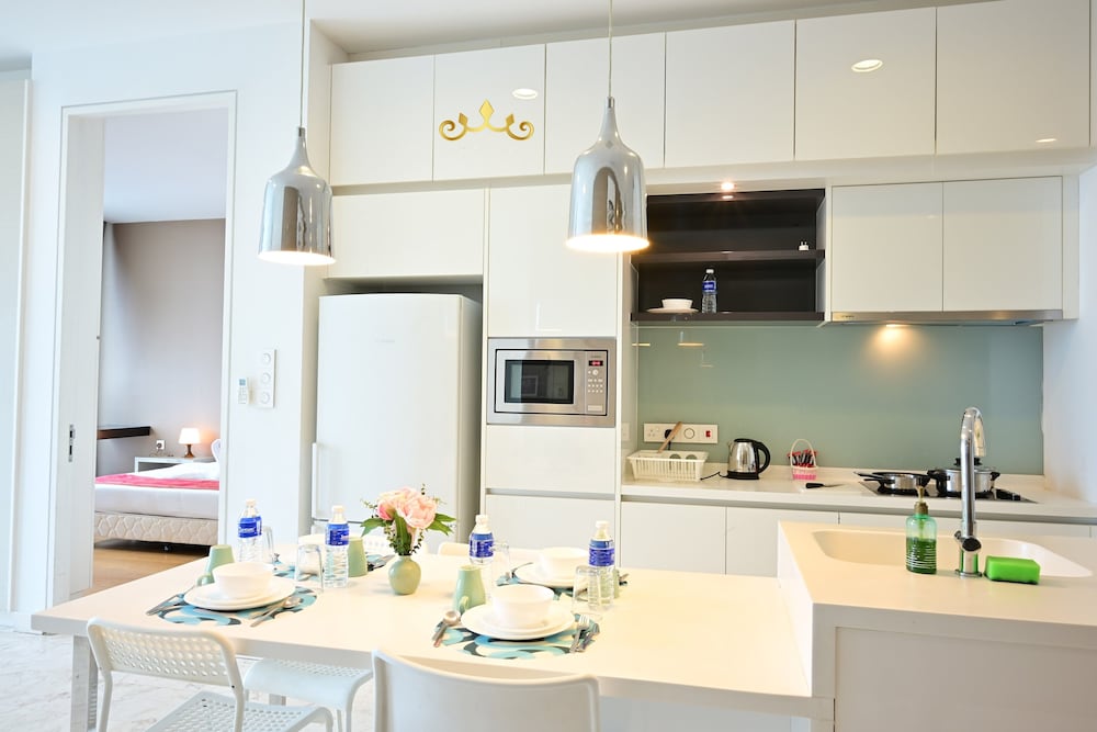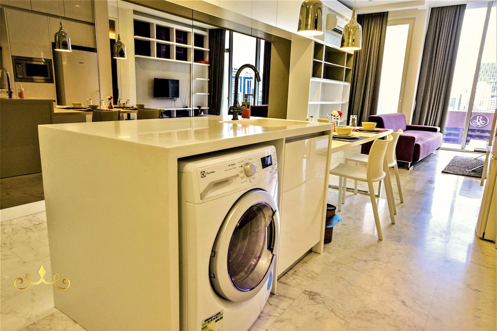 Nice modern apartment on 37th floor, very spacious, clean and great views of city. Pool was great. Great location and a 5 min walk to the MRT.
