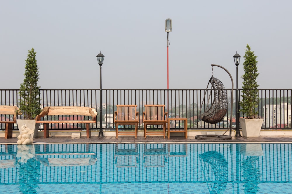 La piscine Rooftop tres propre ..le Resto pour le soir