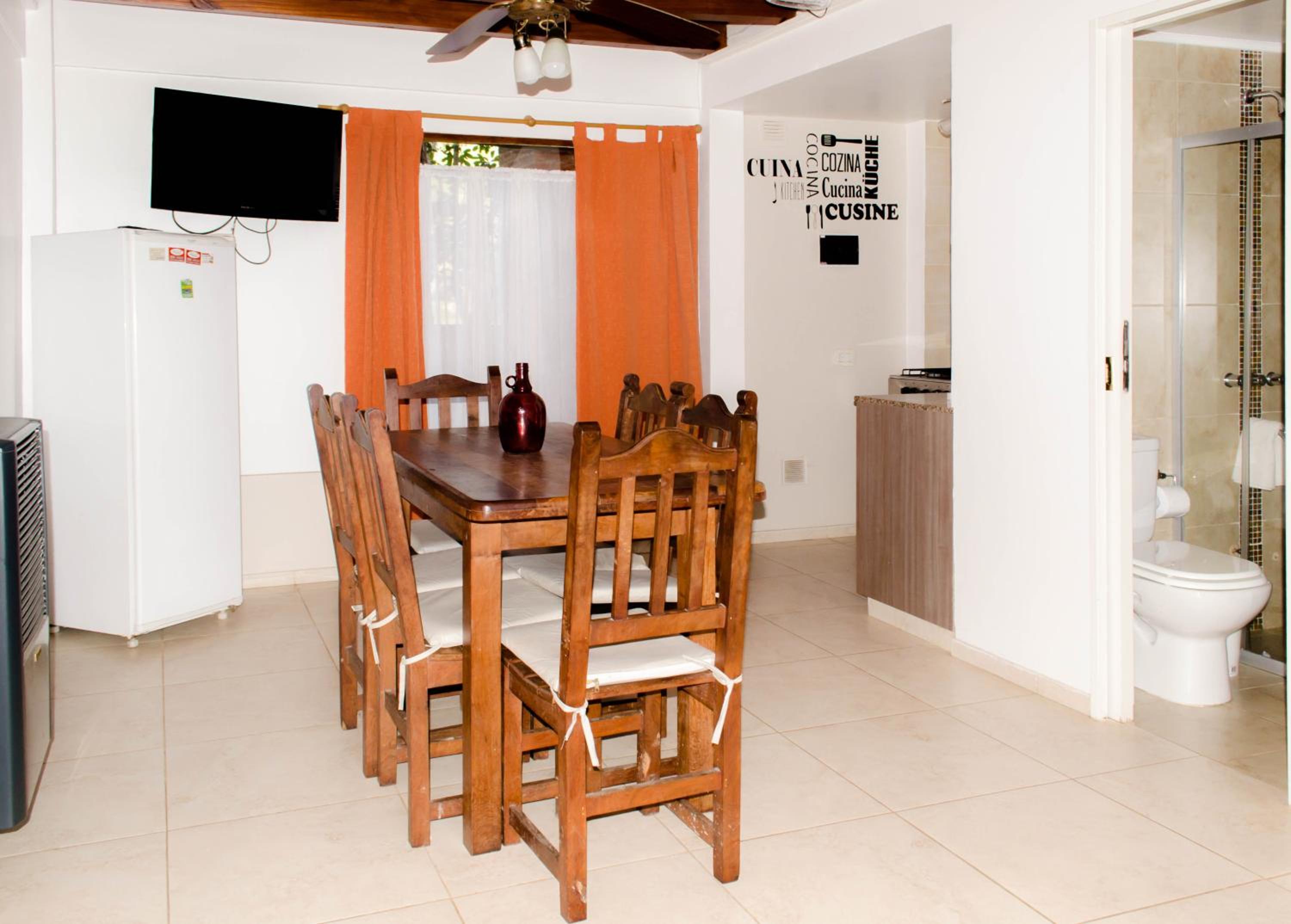 La falta de mantenimiento y limpieza sobre todo. El inodoro tenía pelos y las paredes de la ducha bastante sucias y muchas cosas con falta de mantenimiento. Ni bien llegamos notamos que la bacha del baño perdía agua por lo que nos alcanzaron un trapo. No tenía pava eléctrica, ni secador de pelo y los elementos de cocina eran viejos. Costaba mucho regular el agua de la ducha. Las fotos que muestran en booking son más que nada de las cabañas pero te pueden tocar unos pequeños departamentos.