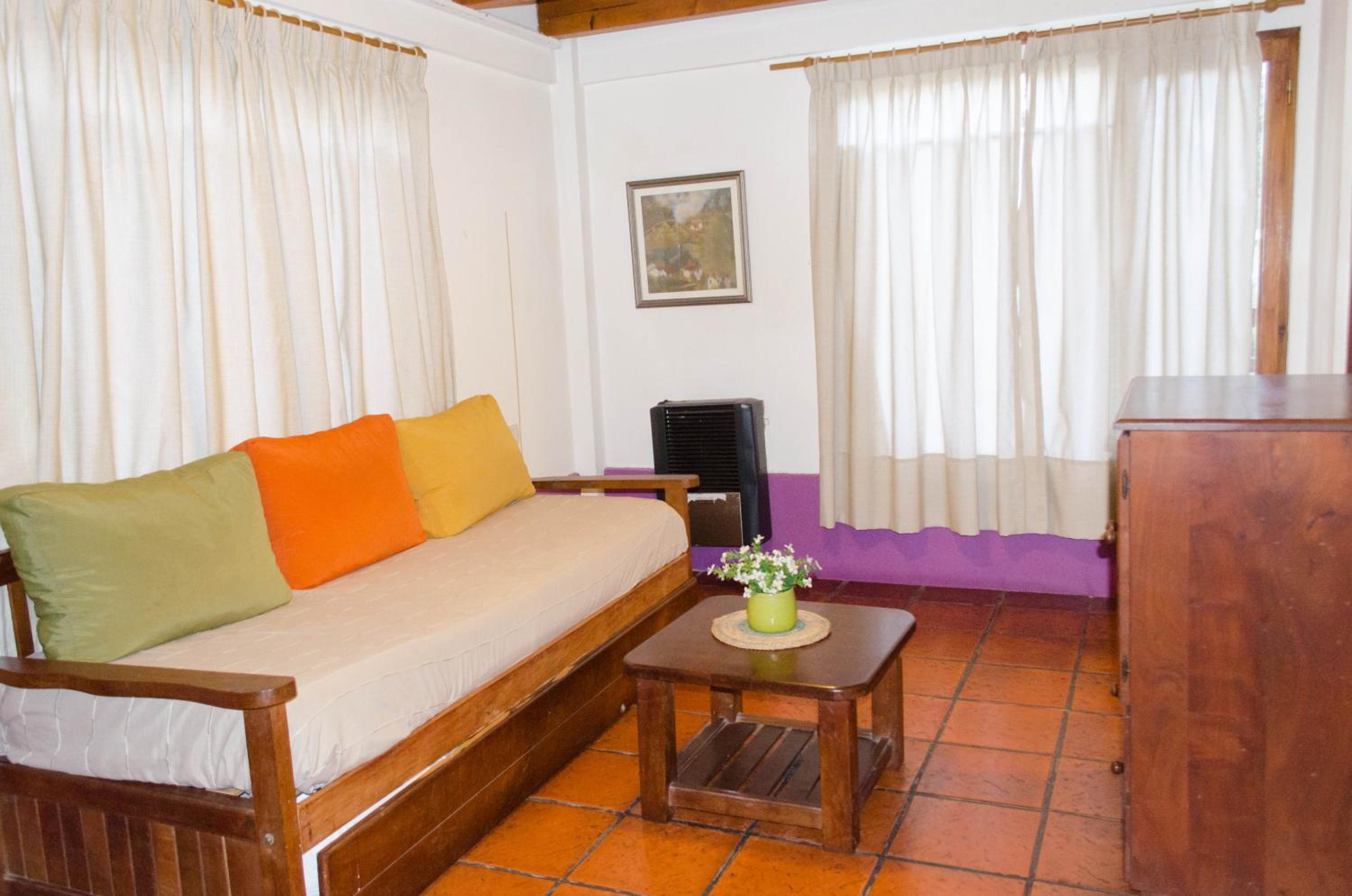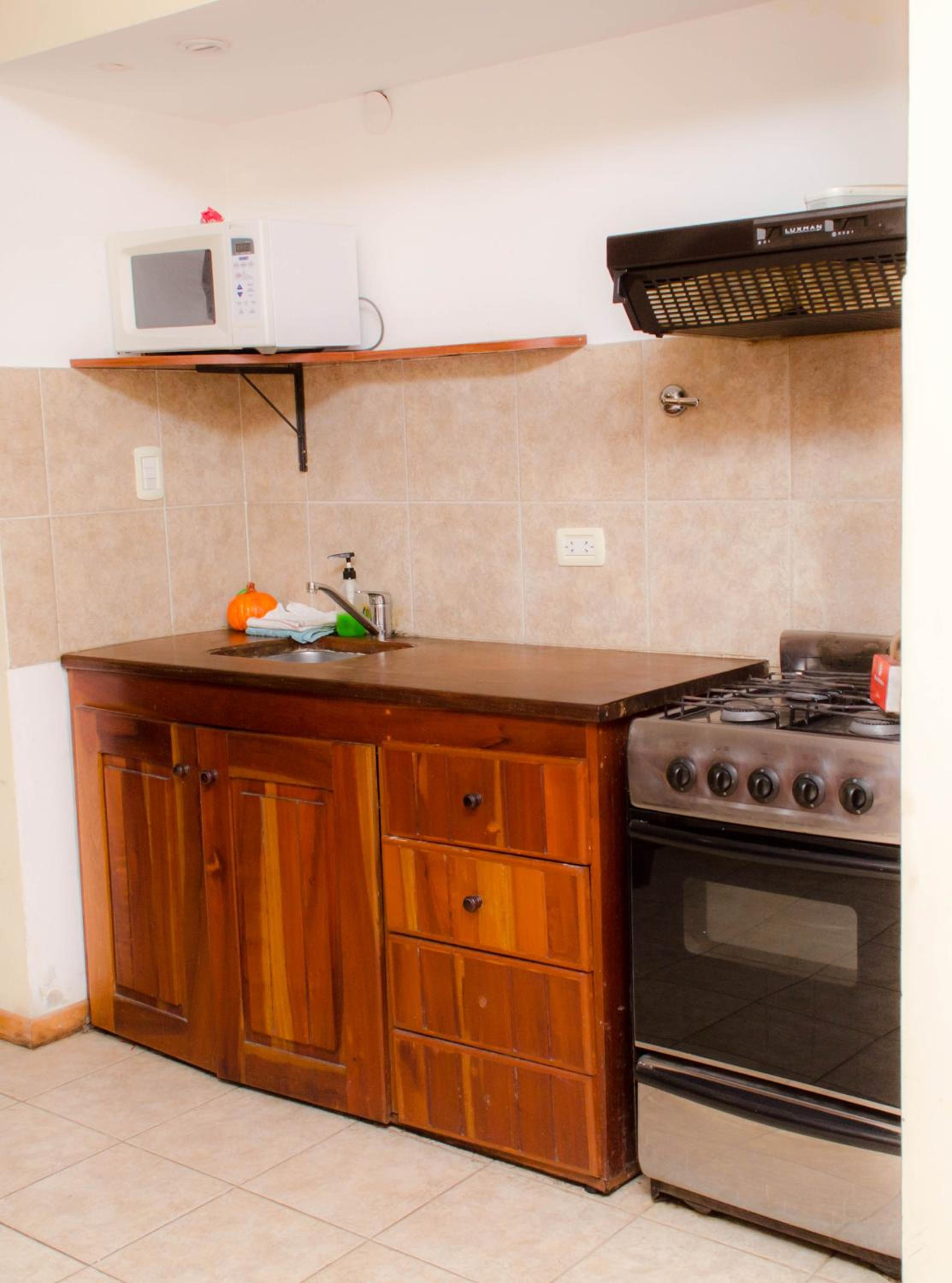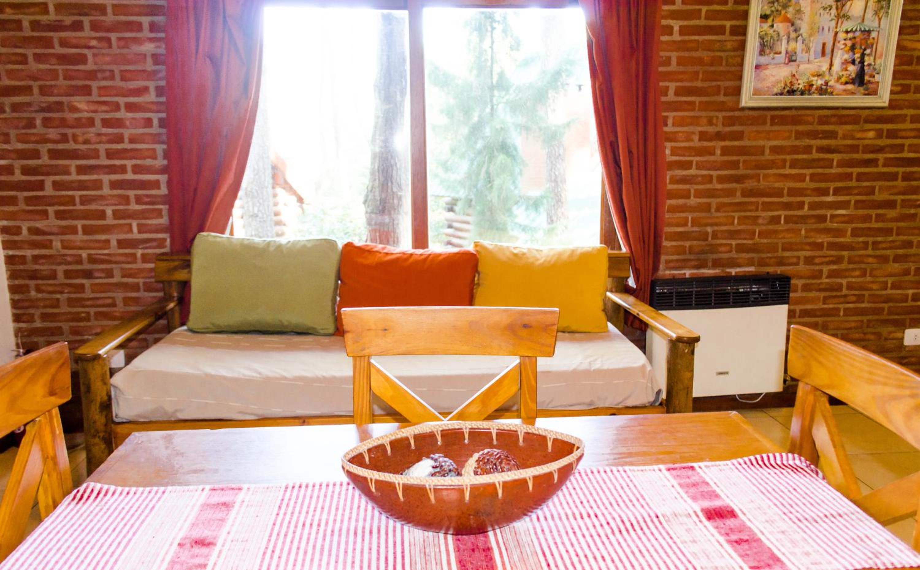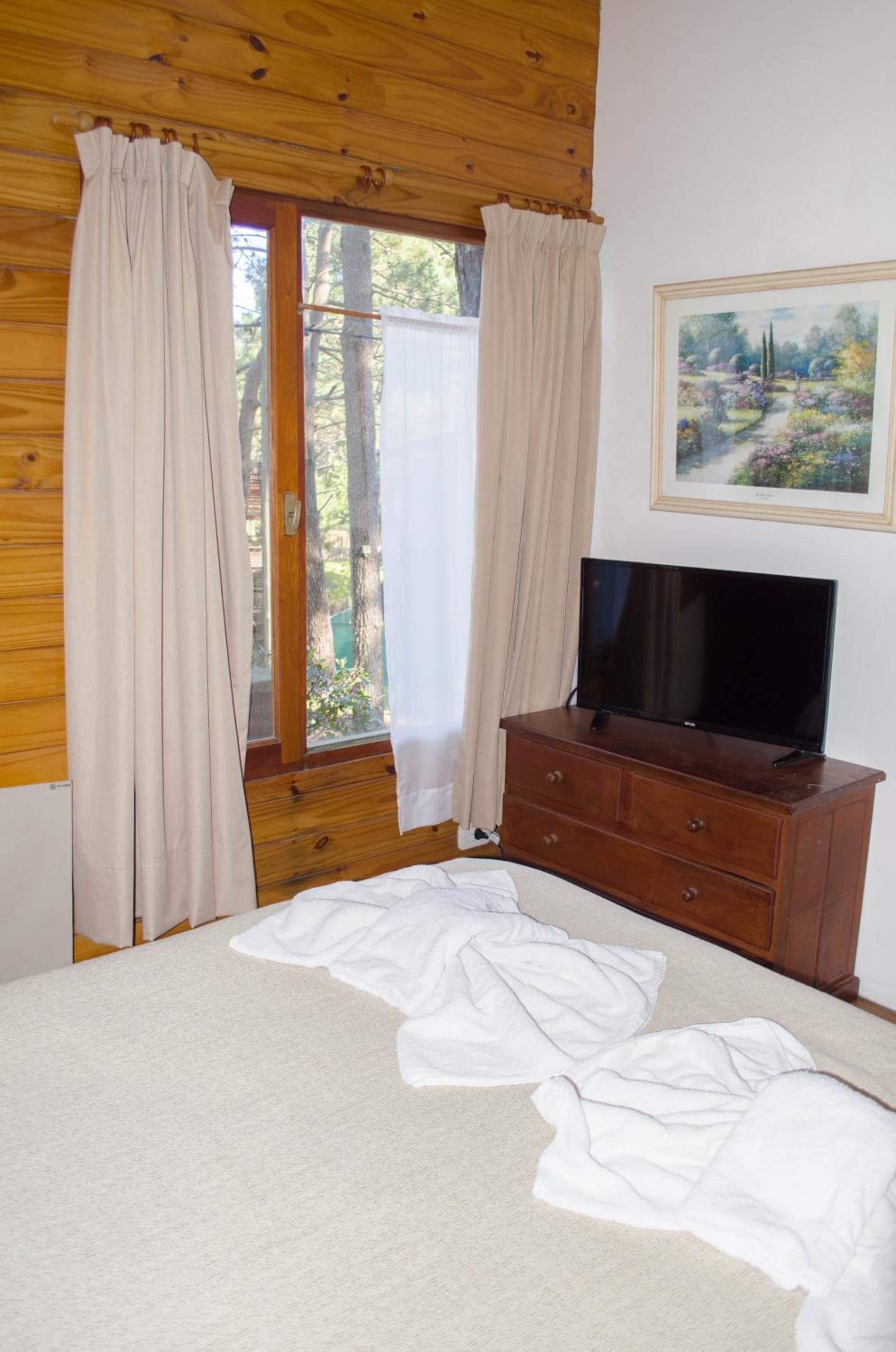 Alquilamos la habitación doble. Es un pequeño depto con parrilla. El jardín y el paisaje en el que está inmerso es muy lindo.