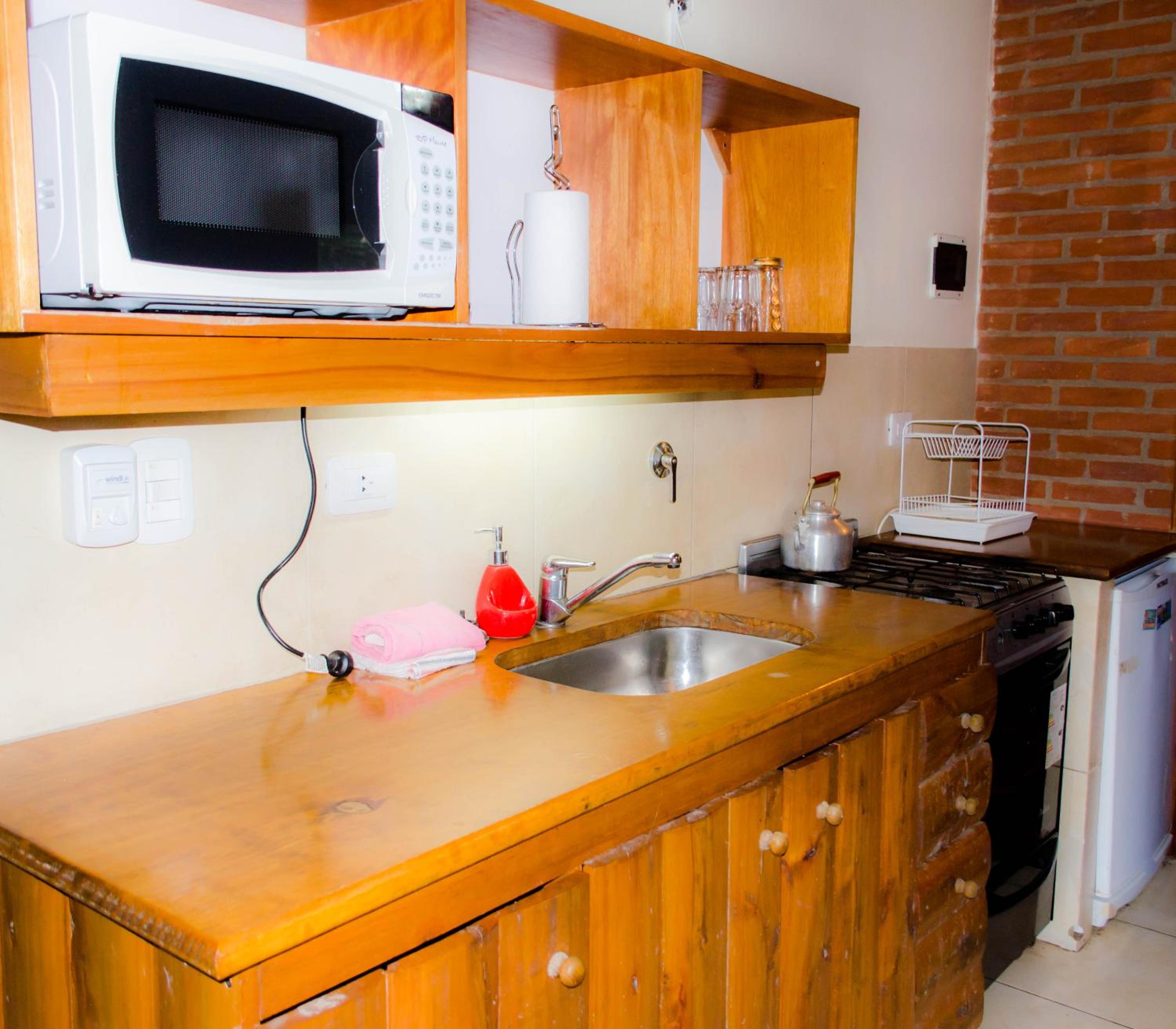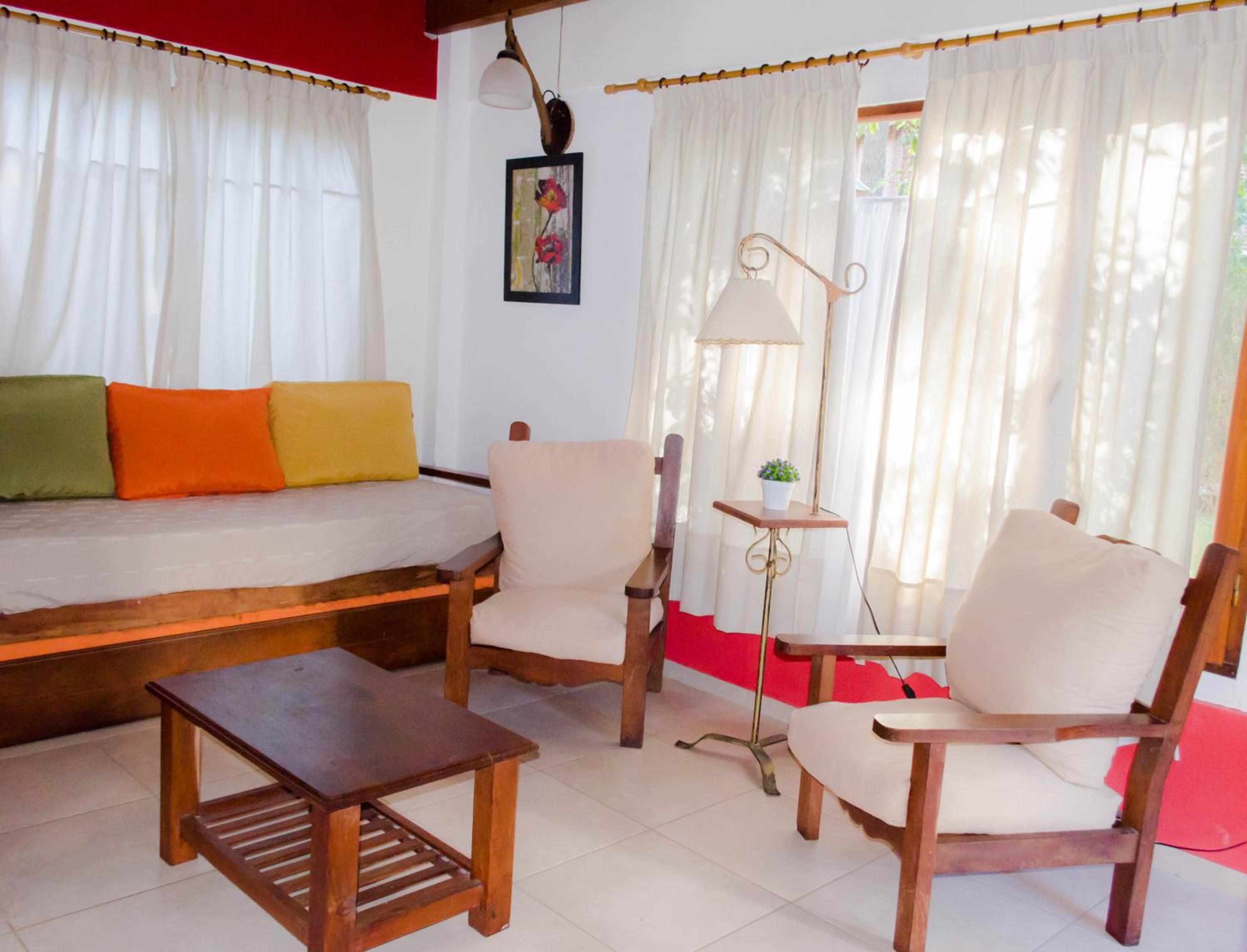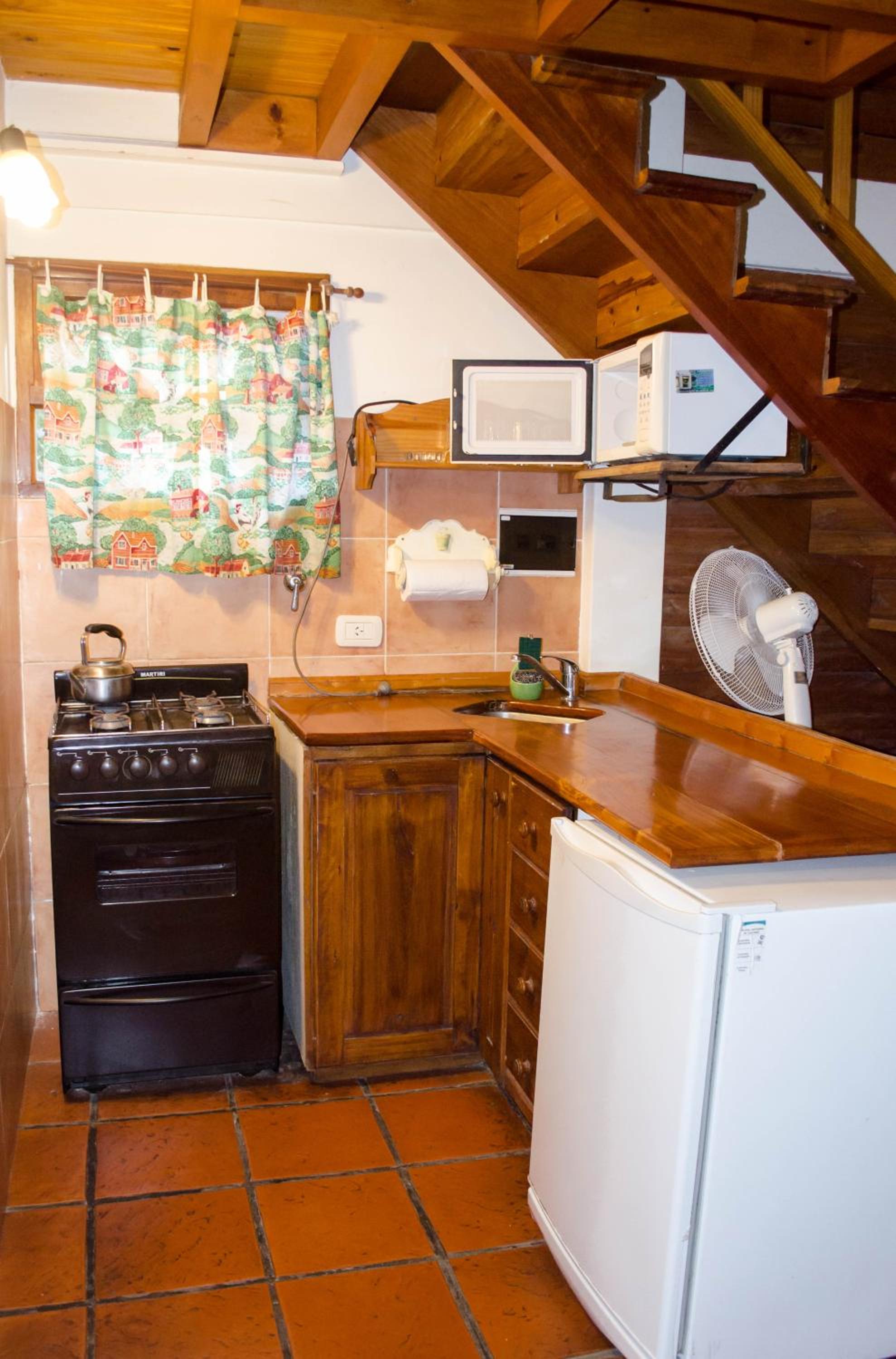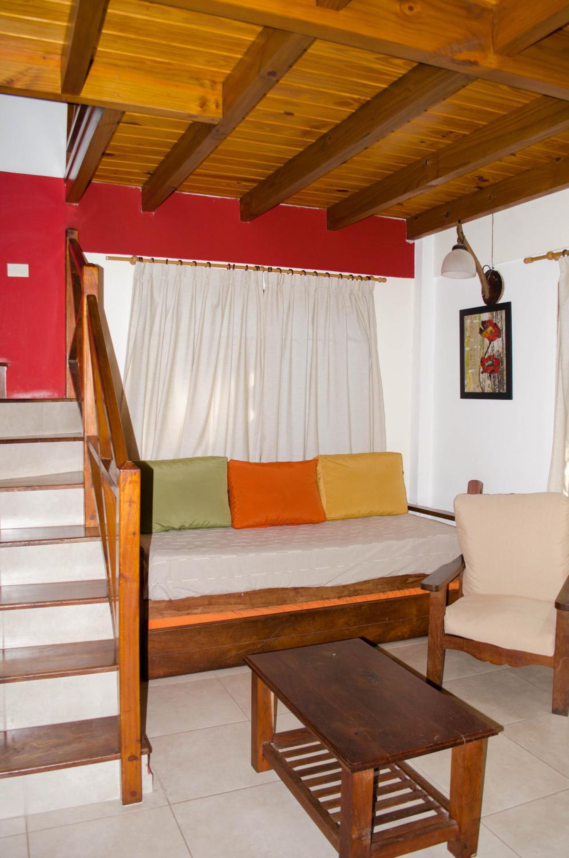Alquilamos la habitación doble. Es un pequeño depto con parrilla. El jardín y el paisaje en el que está inmerso es muy lindo.