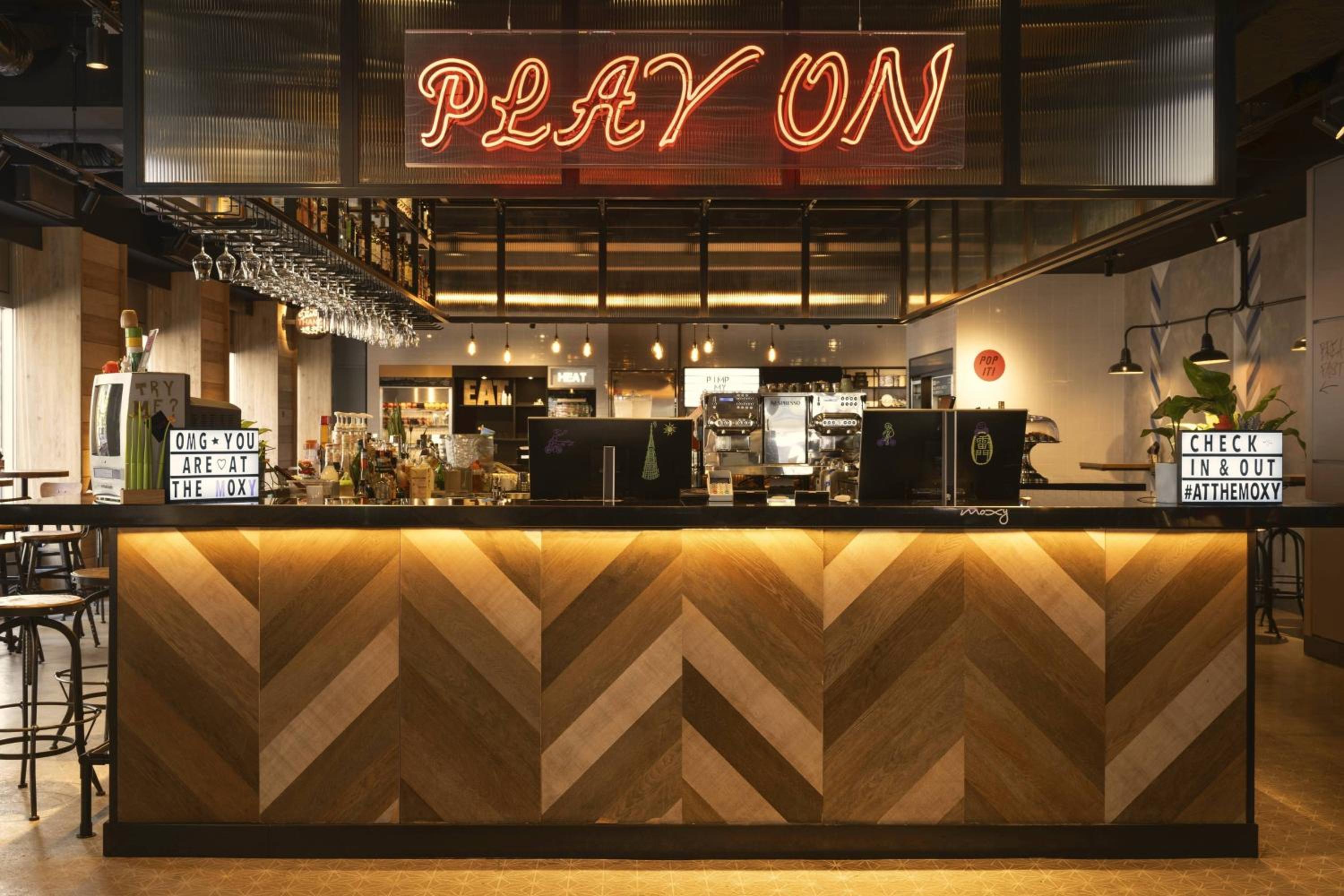 Catena Moxy, hotel di budget ma con caratteristiche tipiche del gener. Camere semplici, colazione buona, struttura giovane e dinamica, staff molto disponibile.