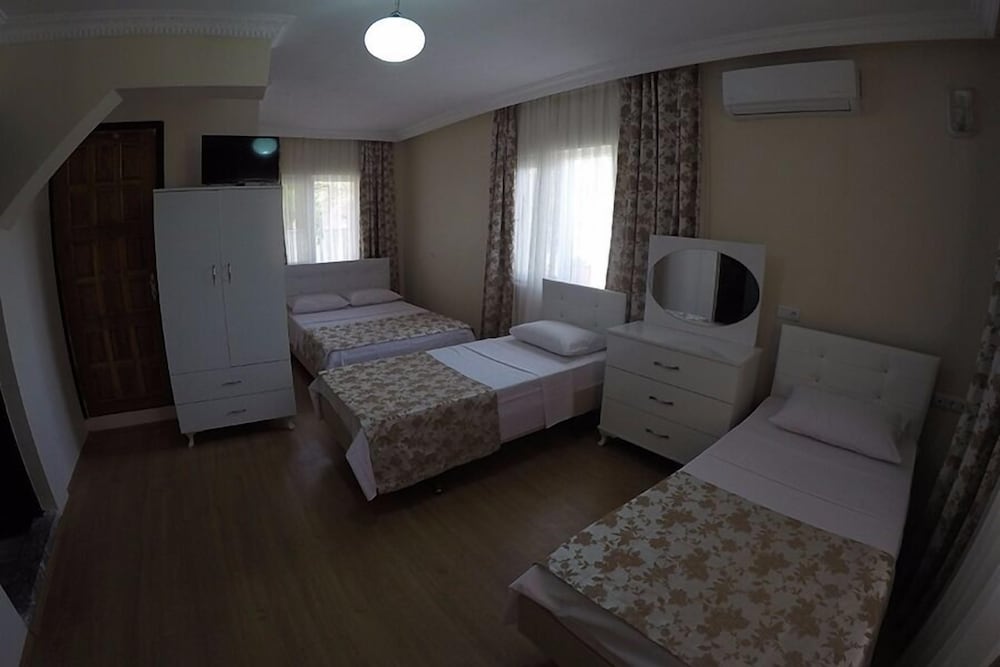 Petit hotel familial, nous avions l'hotel pour nous tout seul, dommage que ce n'était que pour une nuit, nous étions de passage, petite piscine sympa, à 100 mètres petit épicier, terrain de foot et jeux pour enfants. Il y a un petit jardin avec une balancelle, nous avions la chambre de 7-8 personnes au rdc donc avec une terrasse table et chaises donnant sur la piscine. Chambre très propre avec deux salles de bains, moyennement équipé, par contre peut être un ou deux lits qui grinçaient et les clims un peu fatiguées. Franchement pour une ou deux nuits lors d'une halte pour Pamukkale c'est parfait.