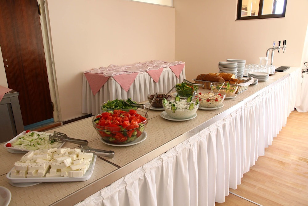 We paid for all-inclusive food, the fact is that the meal was buffet-style unlimited consumption, but with poor quality food! The selection was limited, there was absolutely no variety. At breakfast, there were 2 kinds of cold meats, eggs, and "baby" sausages that tasted bad. Cucumbers and tomatoes were the everyday vegetables. The fruit selection wasn't too big either, melons or grapefruits. The main dishes weren't very varied either...we also saw the meatballs in 3 different ways... .. and other unrecognizable, tasteless dishes. Of course, you can't cook well for all guests, but it's a bit annoying that you pay full board and have to go to restaurants every day to be able to eat delicious food. (We spent 7 days in the hotel, but on the 4th day we didn't even attend the dinner.) Among the drinks, draft beer, wine and soft drinks can be consumed in unlimited quantities. Coffee is only available at specified times. Soft drinks are not included in the package and must be paid separately. The rooms are quite old and could be improved, but they are clean! The staff is very nice, especially Smiley!