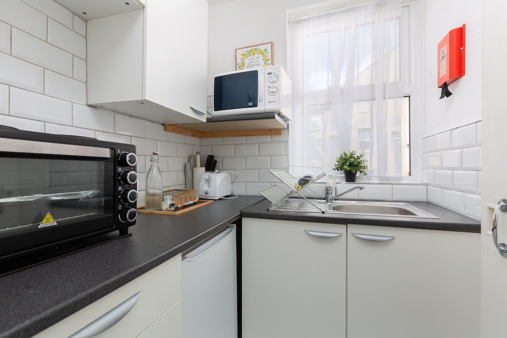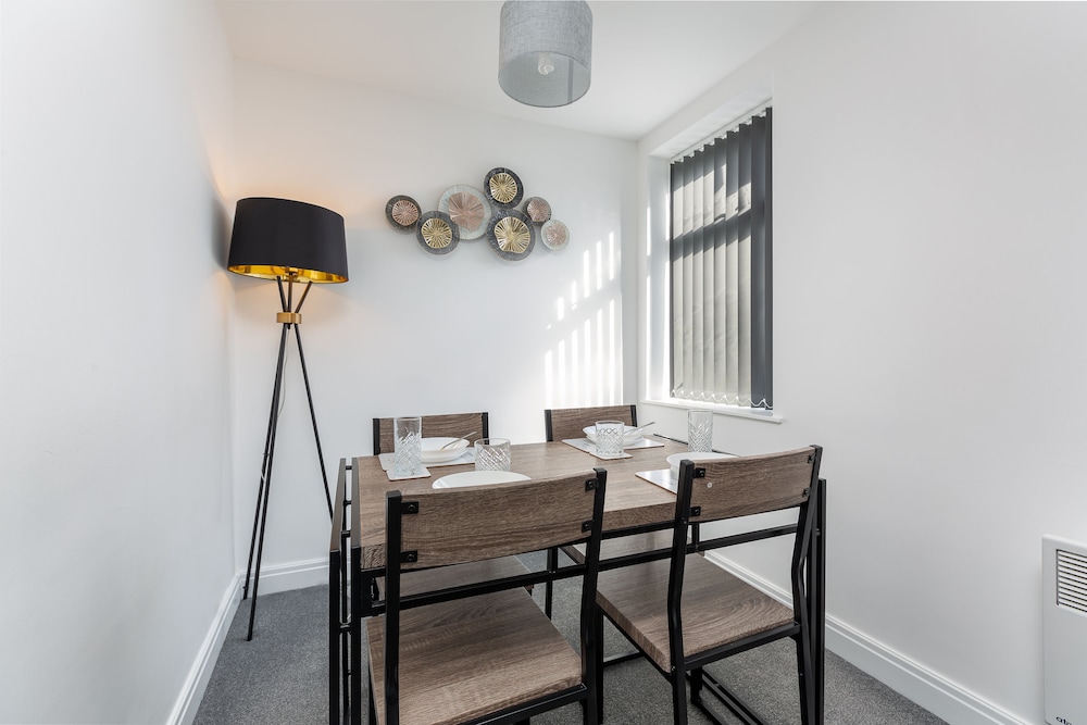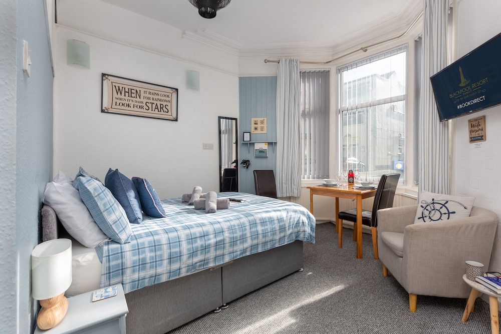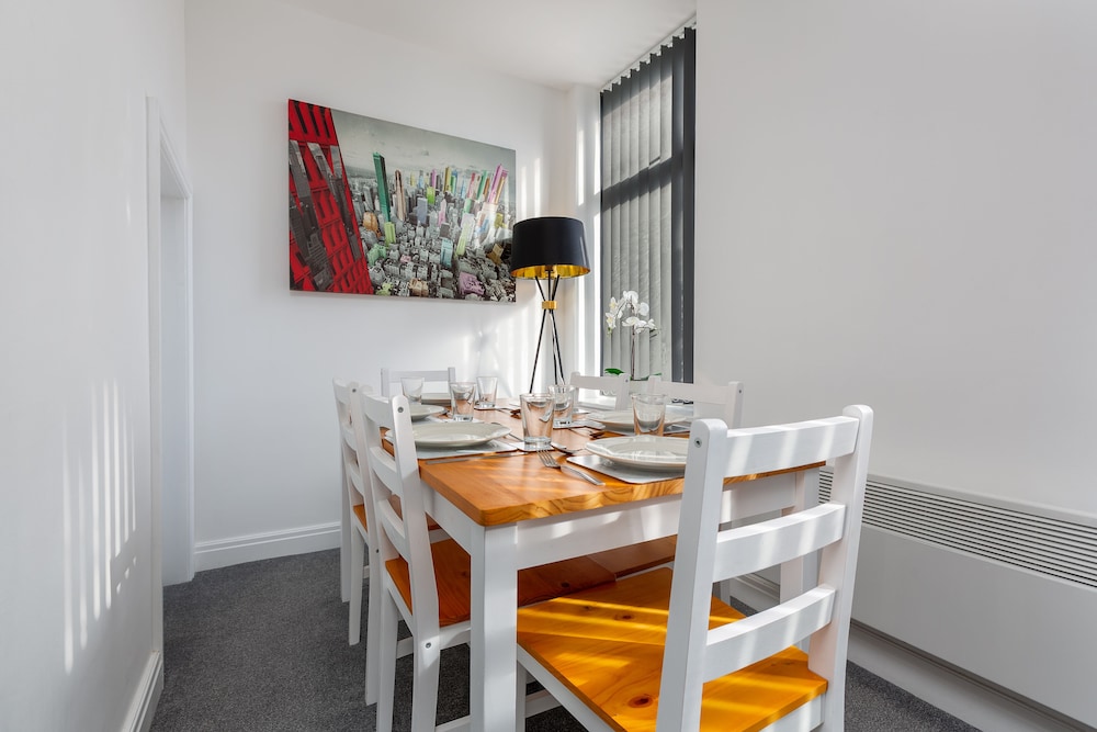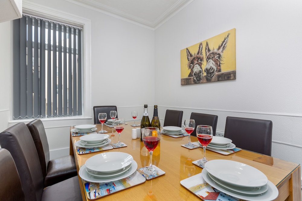 Large spacious and an excellent location for all attractions. Ignore the area which is run down you are literally 5 mins from the town the main attractions and the bus /tram to the pleasure beach. Property owner runs coffee house on site too! Only problem we had was the WiFi was a bit hit n miss!!... Everything we needed was there and there's a shop (with a cash machine) across the road anyway