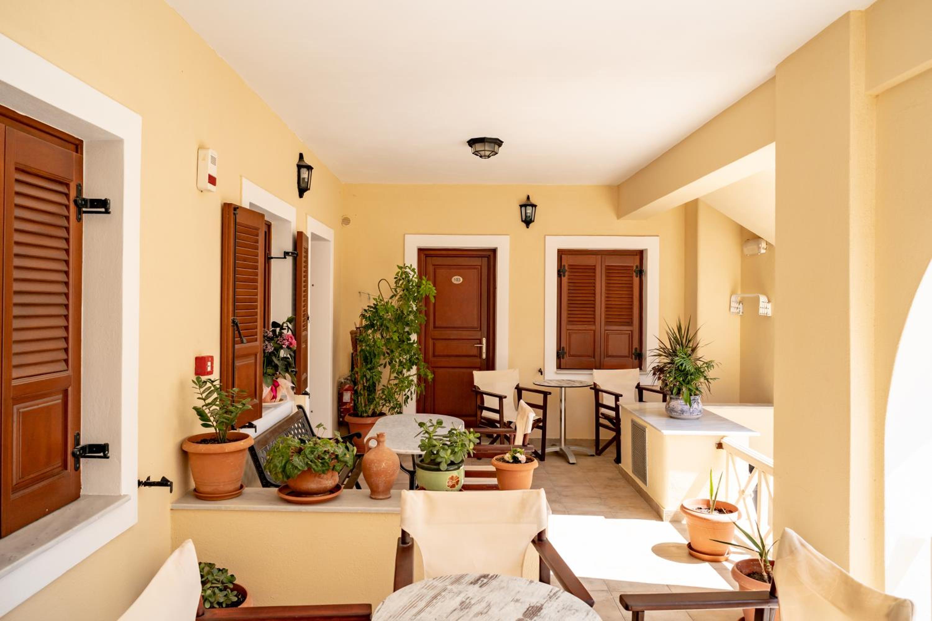 l’accueil chaleureux du personnel, leur aide. Nous avons également apprécié la tranquillité et le charme de l’établissement. Les chambres, très confortables et fonctionnelles, dans un style typique grec.