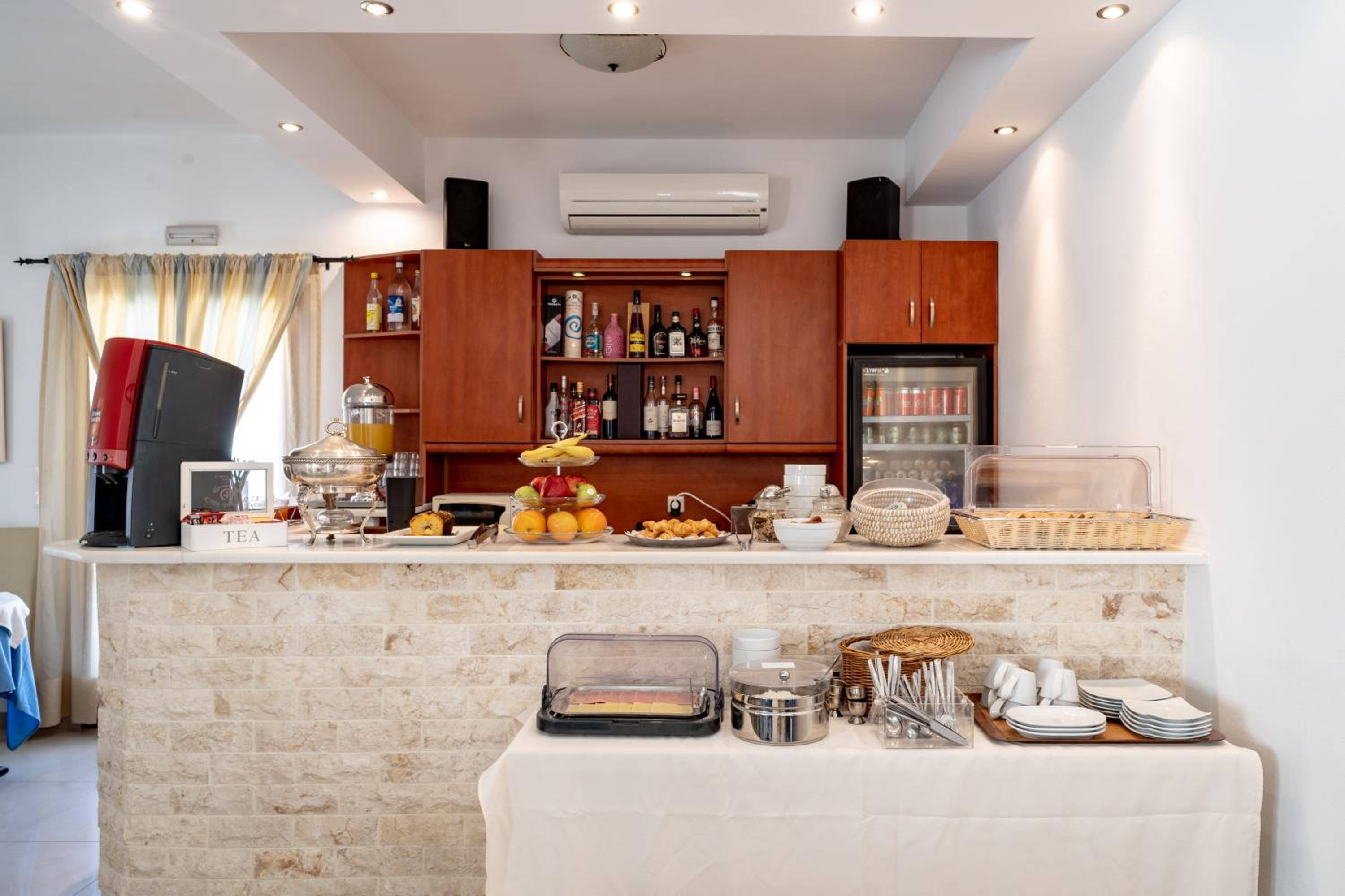 Aamupala oli riittävän monipuolinen. Sijainti oli hyvä lähellä rantaa ja rauhallisella alueella. Lentomelu ei ollut häiritsevää. Kiva pieni hotelli. Maksua vastaan pystyi tilaamaan kuljetuksen satamasta 55€/ 7 hlö ja lentokentälle vastaavasti 45€.