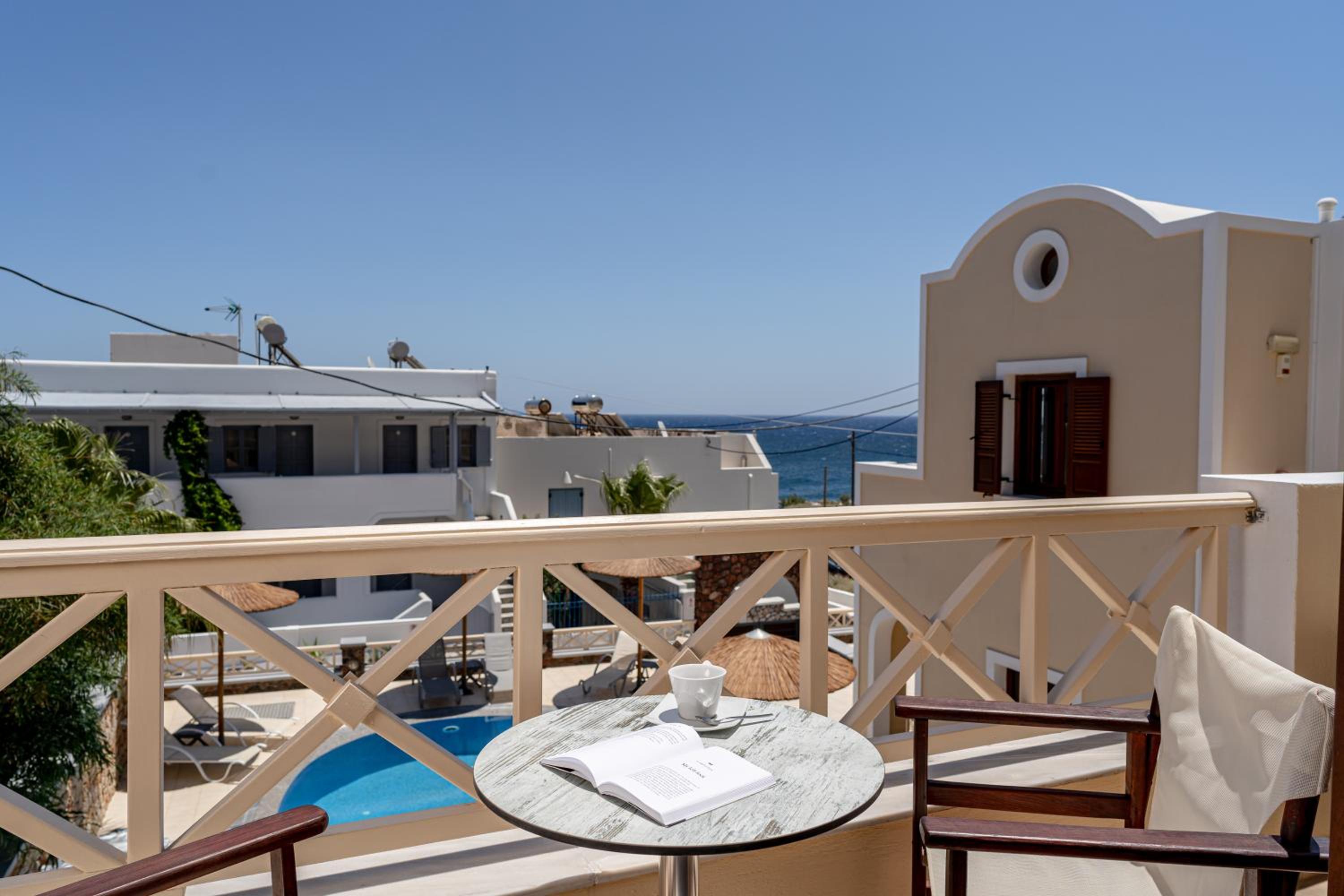Posizione tranquilla e ottima sia per rimanere a Kamari che come punto di partenza per visitare il resto dell'Isola.