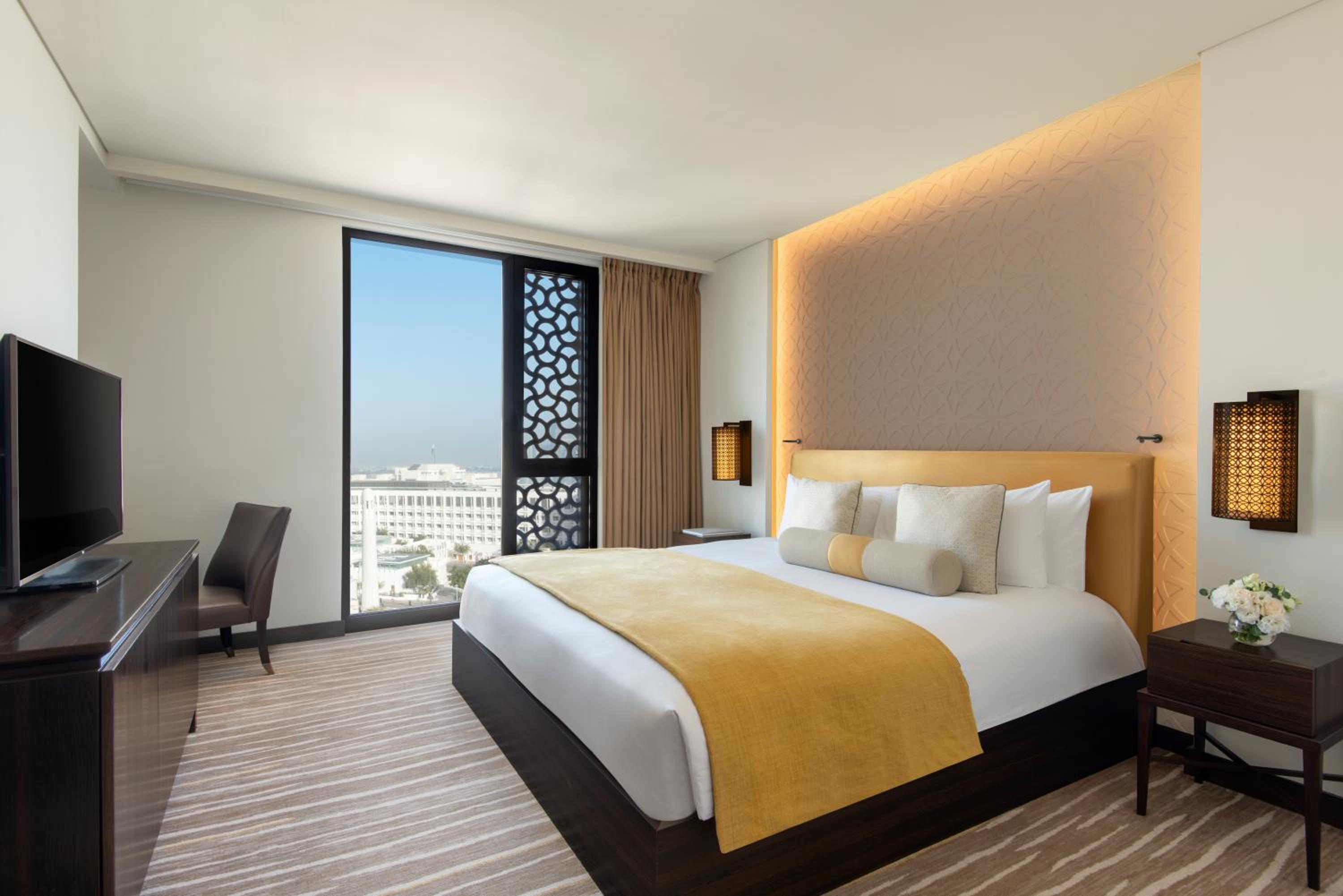 Luxurious Accommodations: Alwadi Hotel Doha MGallery offers air-conditioned rooms with top-notch amenities like a flat-screen TV, BOSE docking station, and espresso machine, ensuring a comfortable stay for guests.