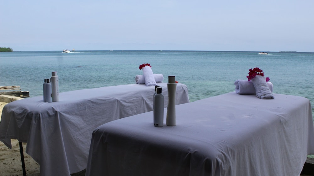 It’s not what is pictured online. We showed up and were immediately disappointed. You must like fish if you plan on staying the night. We had to eat the same pasta dish four times. The menu doesn’t change and is very limited. The cocktails are overpriced and not tasty. There is no garden area. The rooms are hot and there is no warm water. You will be told multiple times by staff that your payment does not include tip. The island doesn’t have much to do so I would actually recommend just doing a day trip. The beaches here are ok but only on one side of the island where it’s not windy.