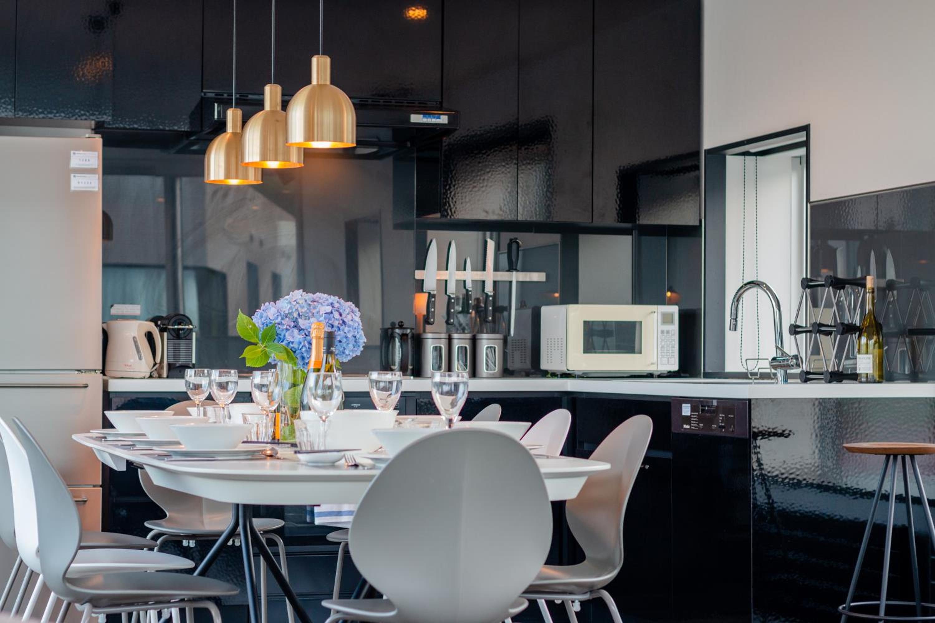 The kitchen was our only gripe. Very nice space but the practical facilities were way below standard. Very little cutlery (no knives at all - we had to ask for some to be provided), very few glasses, all mismatched. Too few pans, (no frying pan) and not enough utensils. No extra bin bags to deal with our rubbish as per very strict instructions, and a dirty oven. Empty salt and pepper grinders, which they filled for us when we asked. No staff on site. We saw the friendly cleaners, that’s it. Given management sends you a stern ‘if you leave the place dirty, we’ll charge you’ email before you arrive, the fact that we were met with an oven grill caked in layers of grease from previous guests was surprising. We waited for 3 days for it to be cleaned (we had no scouring pads, or I would’ve done it myself!). All in all, it was a 6/10 reception, but they addressed all the little issues when we asked, sometime quickly, sometimes slowly. Just wish we didn’t have to ask. And ask. And ask. Just fill the cutlery draw guys, get more glasses and a frying pan, give your guests more dishwasher tablets and ways to keep the place clean. It’s pretty simple.