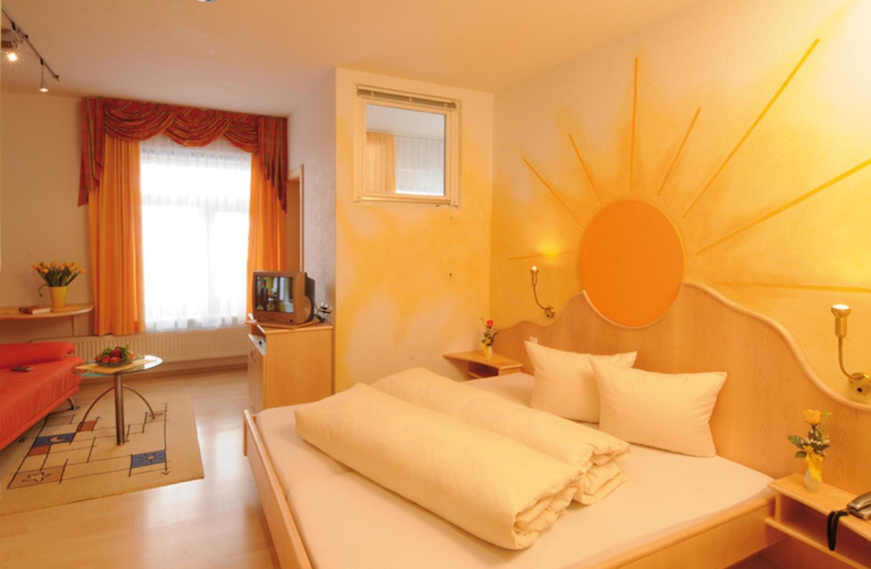 Hotel Camona & Apart Walserhof offers elegantly designed rooms with stunning views of the surrounding landscape. Each room is uniquely themed, providing a cozy and comfortable retreat for guests.