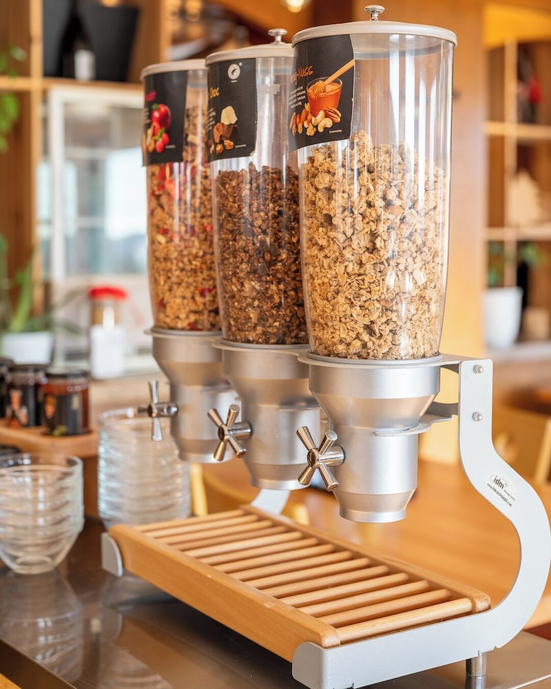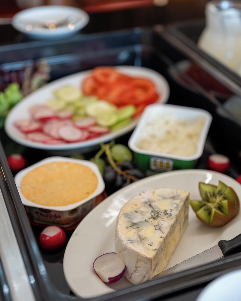 Wir waren zu einem Kurzaufenthalt von einer Nacht im Hotel. Am Abend waren wir essen und zufrieden mit den Gerichten (Burger, Pommes und Schnitzel). Das Frühstück am Morgen war sehr lecker und vollkommen ausreichend (3 Müsli, Käse, Wurst, Joghurt, Milch, Säfte, Kaffee, Kakao, Brötchen, Laugengebäck, Obst, ...). Insgesamt ein netter Aufenthalt, die Kinderfreudlichkeit möchten wir hervorheben.