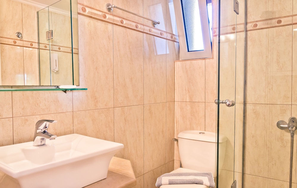 The hotel is at walking distance from two very good beaches, the breakfast had good amount of options, the room was clean and staff is very kind and friendly. We enjoyed our stay.