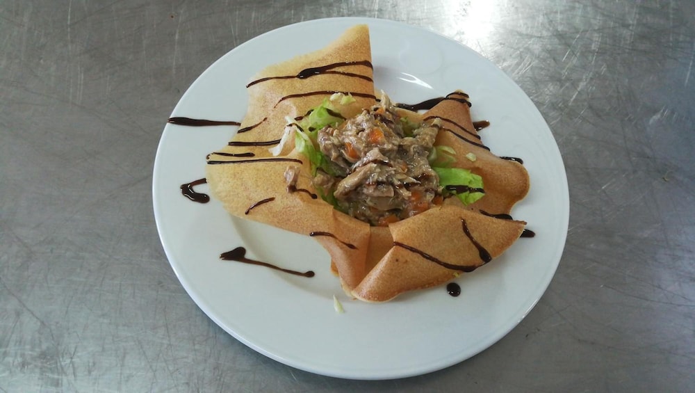 Desayuno con tostada de jamón incluida.
