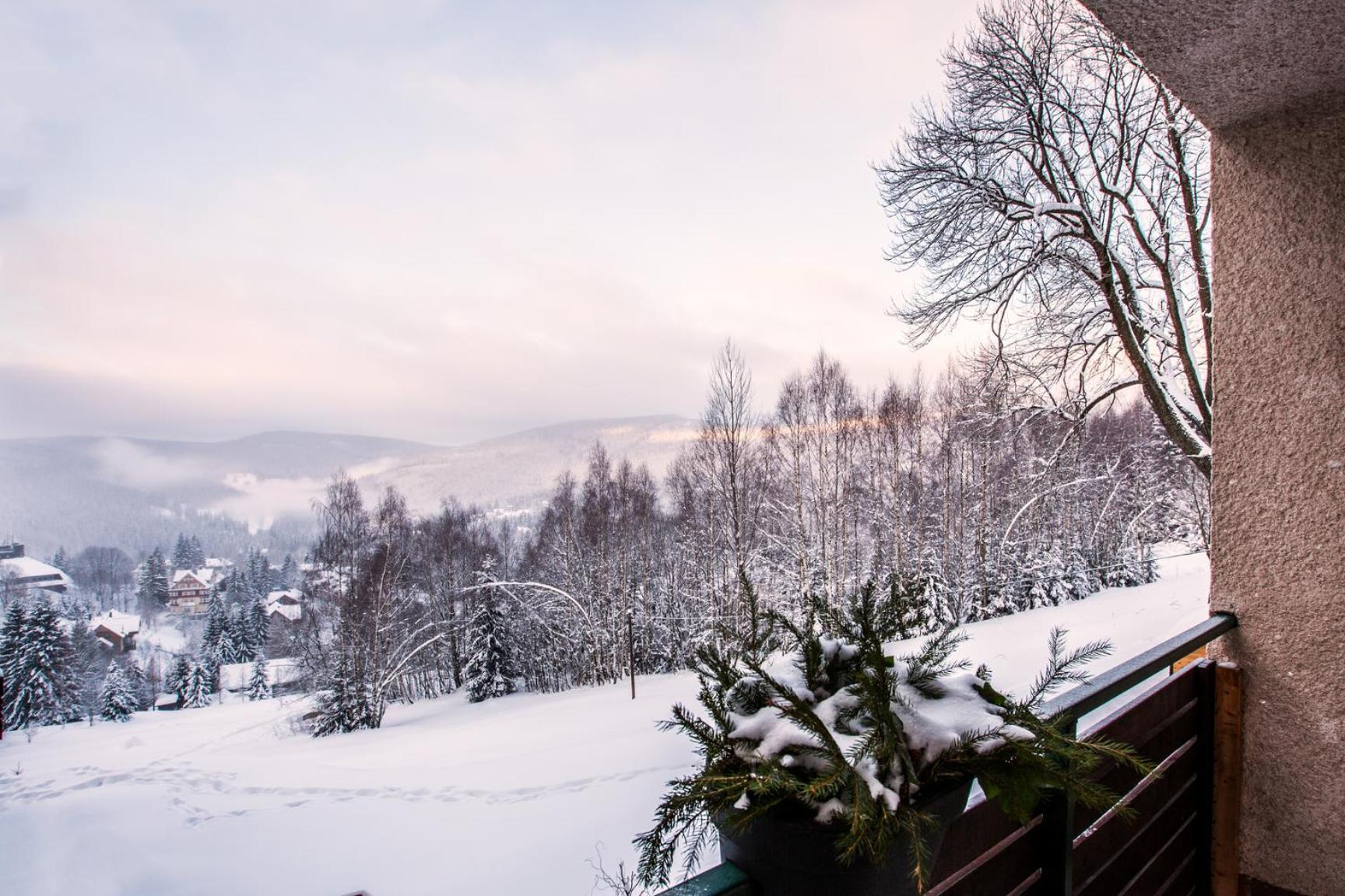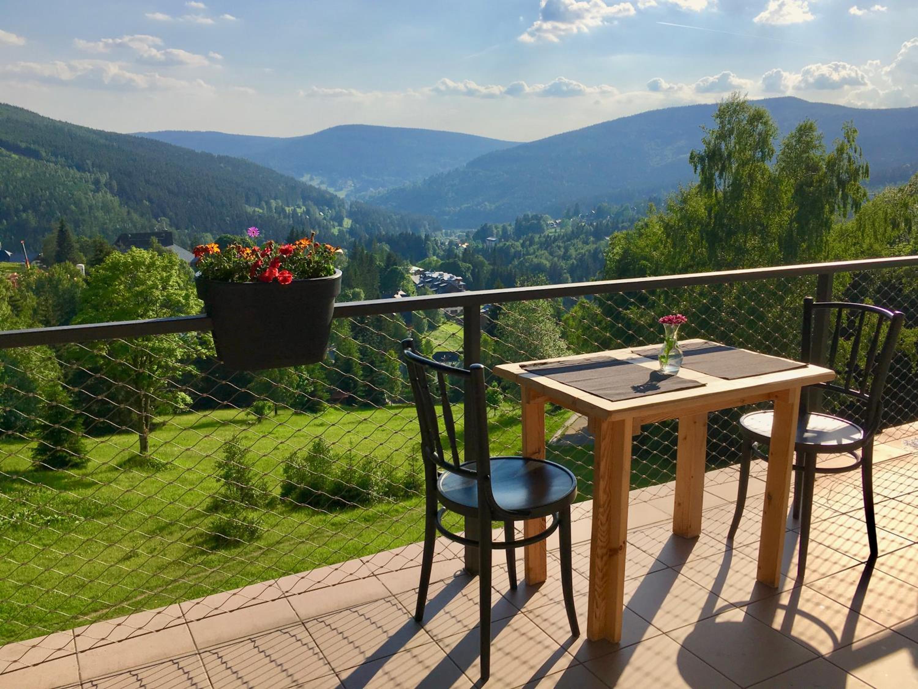 Hotel Horní Pramen offers stunning views of Špindlerův Mlýn from its terrace. The cosy rooms provide a comfortable stay, complemented by a delicious breakfast served daily.