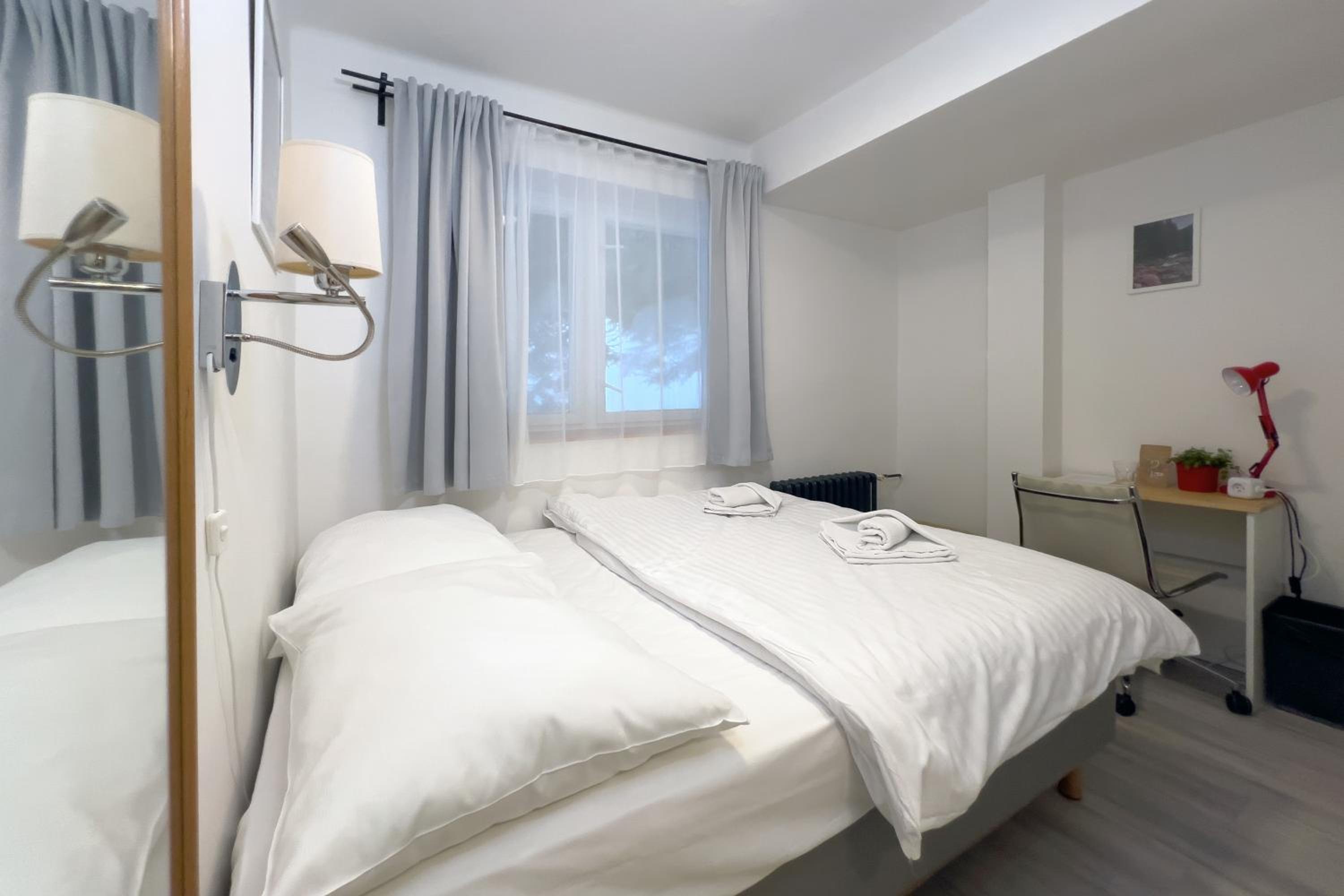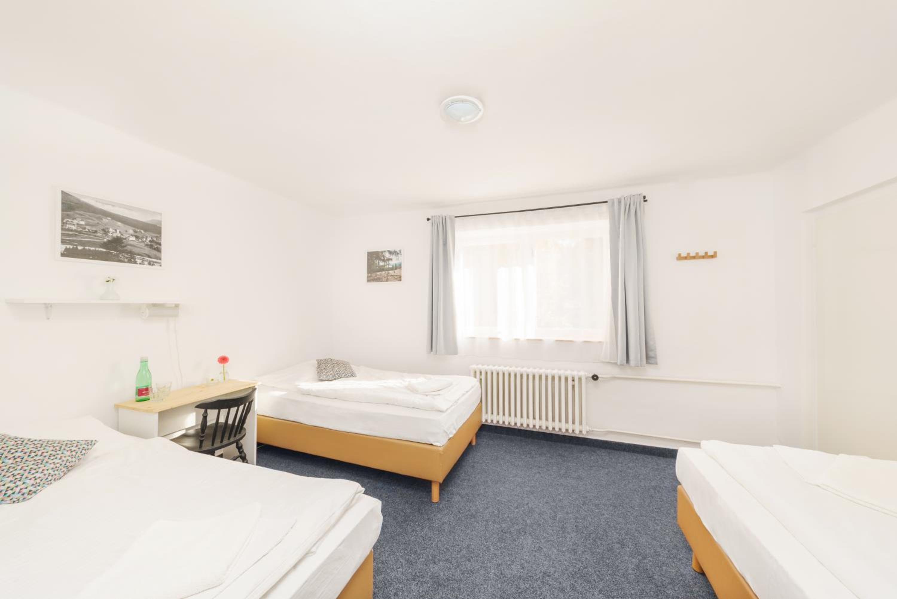 Brak szklanek w pokoju trzyosobowym- można o nie poprosić. Brak stolika nocnego, na trzy osoby- jedno krzesło i mała pufa. Wentylacji brak- trzeba otwierać okno. Pokój trzyosobowy strasznie mały, tak na prawdę tylko do spania, nie do spędzania czasu.