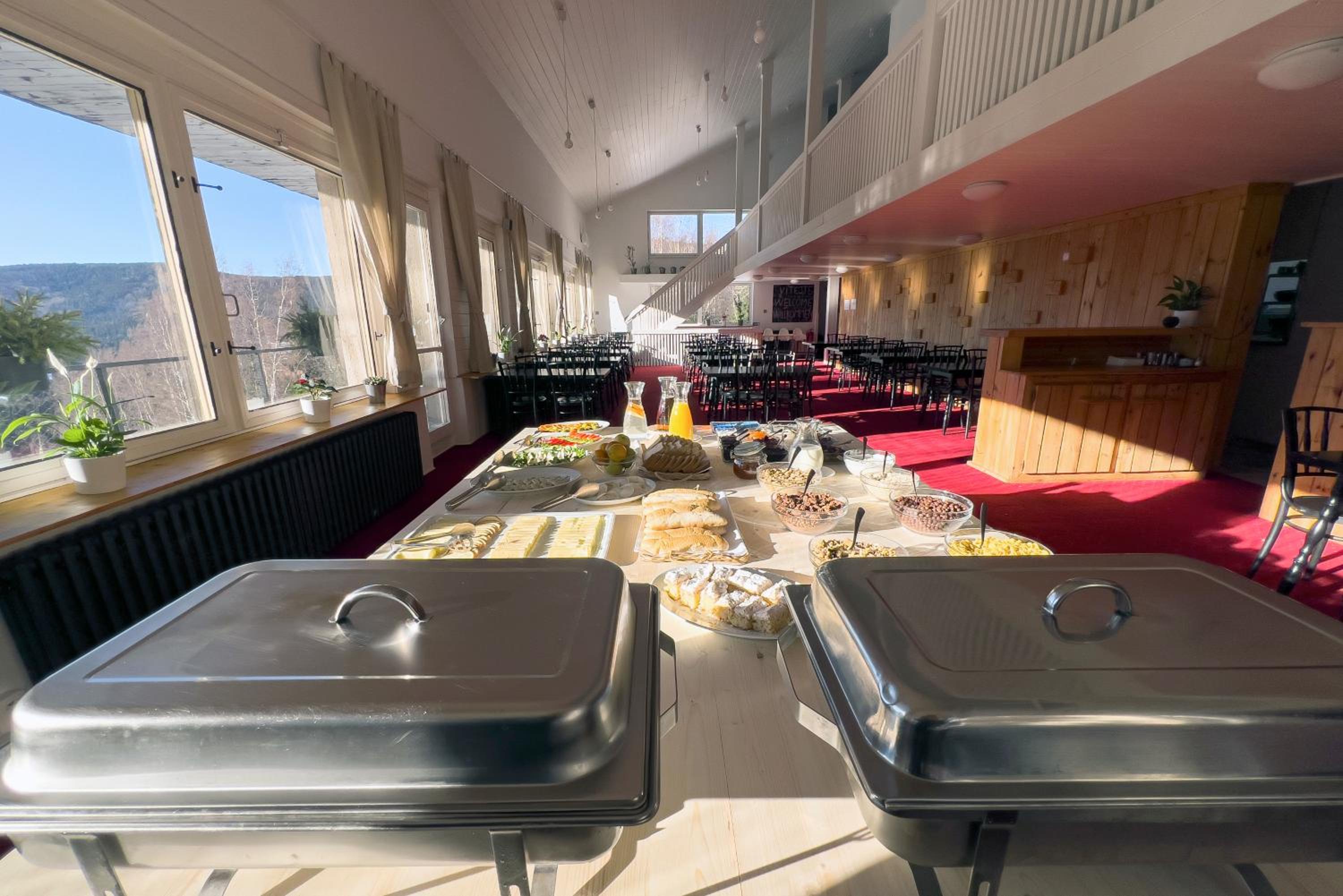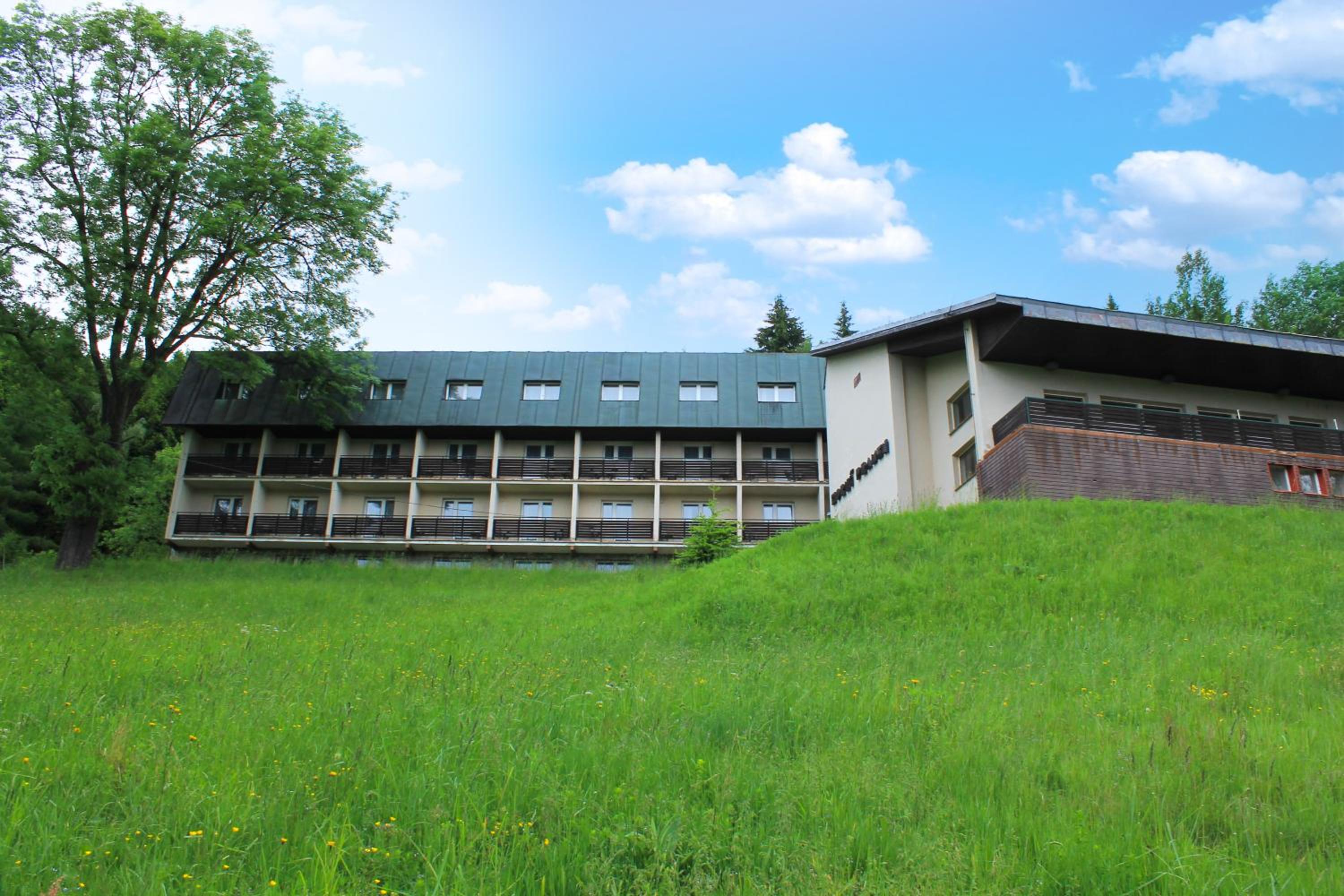 Super hotel, bardzo miły i uczynny personel, uśmiechnięty i chętny do pomocy. Pokoje proste, widać że były odnowione, czysto. Śniadania wyśmienite, spory wybór m.in. jajecznica, parówki, kiełbasa, wędliny dobrej jakości, sery, racuchy, jogurt i granola, owoce, ciasta, pączki, drożdżówki, , kawa z ekspresu, dla każdego coś się znajdzie. Można dokupić obiadokolację w dobrej cenie: 350 kc za osobę dorosłą, za dzieci 249 kc. Posiłki bardzo dobre, kilka do wyboru, są szwedzkie stoły, w tym sałatki, i inne dodatki, nawet niejadek znajdzie coś dla siebie. Wielkie ukłony za kluski z makiem - wyśmienite. Kolacja warta tej ceny. Ogólnie stosunek jakości do ceny wyśmienity! Ski bus dowozi do stoku i zabiera, czego można chcieć więcej. Lokalizacja jak z bajki, trochę daleko od miasta, ale można się przespacerować lasem. Bardzo nam się podobało!