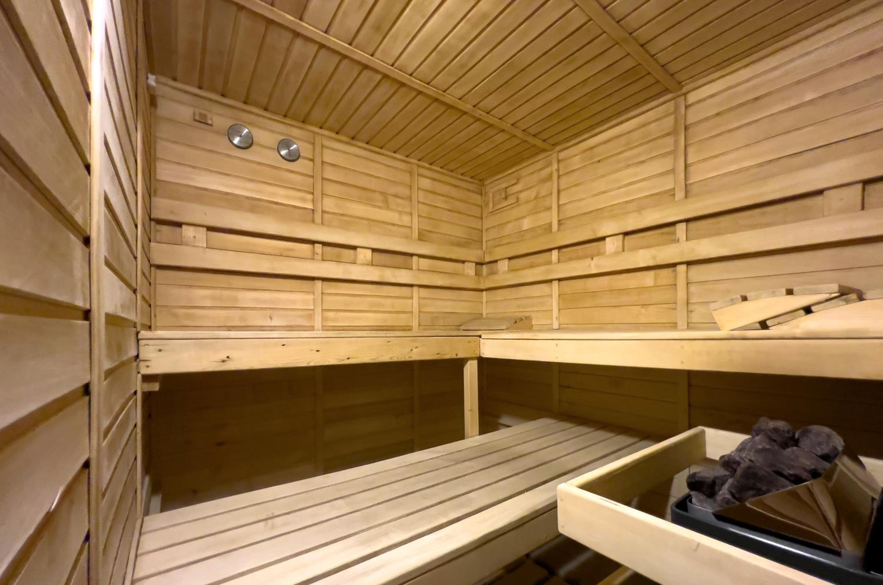 Die Sauna ist praktisch unnutzbar. Die ganze untere Etage der Sauna und Spielbereich passt nicht zusammen. Man sollte sich auf ein Angebot festlegen. So nutzen die Gäste das nicht.