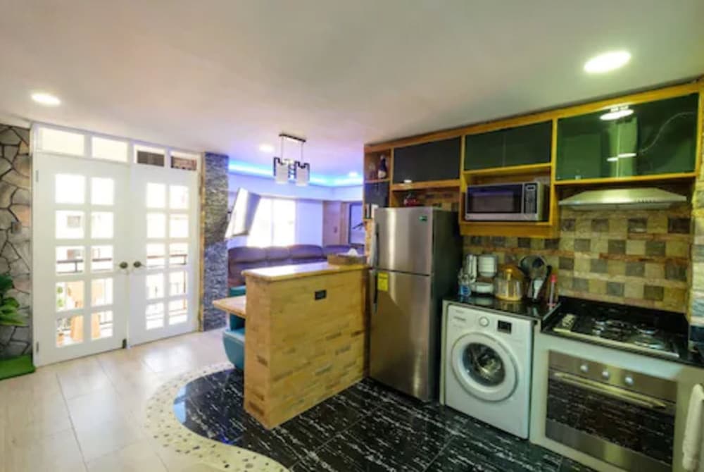 Enjoyed my stay, had a pleasant experience. Reception team is affable and respectful, communication with them is smooth, and while cheerful and friendly, they stay professional. Room is clean and kitchen appliances and cookware are complete with a dish liquid and a sponge all set up. Close to the airport and Marina Mall for grocery and other food stores. Couldn't be more happier with their wash/bathroom, has a bathtub and bidet, sink design is lovely. Bedroom is comfy, and the two air conditioners (one in the living space and one in the bedroom) are lifesavers for someone who gets hot easily like me. Lightning options (warmer or cooler) are awesome.