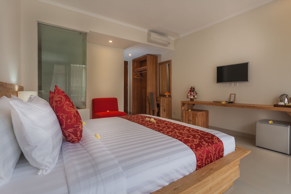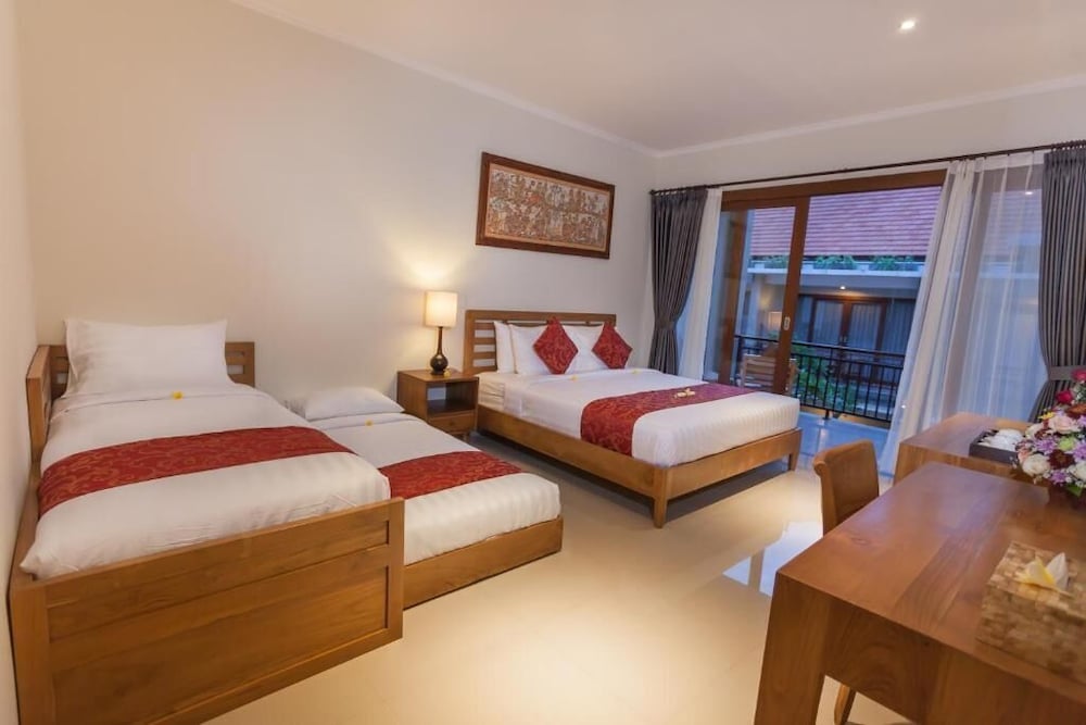 The location of the hotel was excellent, near to many restaurants and the monkey forest. The room was clean and quite modern, AC was fine. We were given two bottles of spring water every day per person. Breakfast was very good and we had so many options to choose from. The pool was very nice and the staff even nicer. The only downside of the hotel was the fact that the speed of internet was horrible, it sometimes worked a bit better but most of the time it was almost unusable. And we didn’t like the fact that they used a lot of fragrance in the room, many customers are sensitive to strong artificial smells. Some noises can be heard to the room.