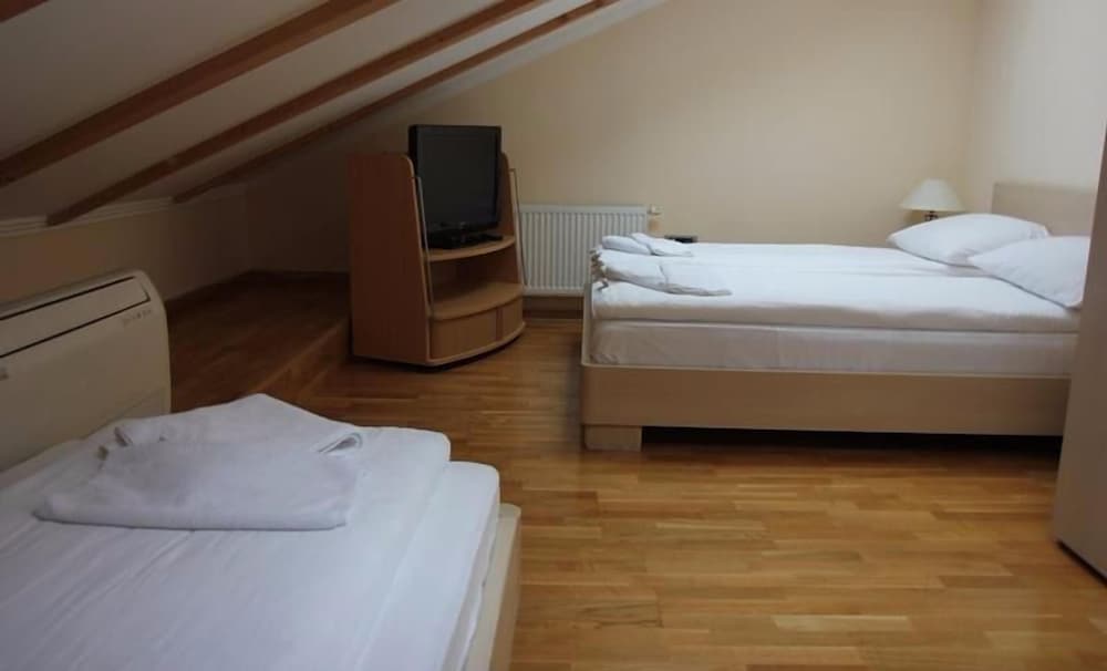 We arrived in Sarajevo after a long bus journey and were met with a thunder storm which we thought might bring some cooler weather. The next day however was blue sky and a continuation of high temperatures which made our room very hot, as it had no a/c or fan. The check in was easy and the room was spacious but old and tired. The bathroom was small but adequate. The best thing about the hotel was by far its location, right in the centre of the old town, next to Bascarsija tram stop. Sarajevo is a lovely city but unfortunately this hotel was not a highlight of our holiday.