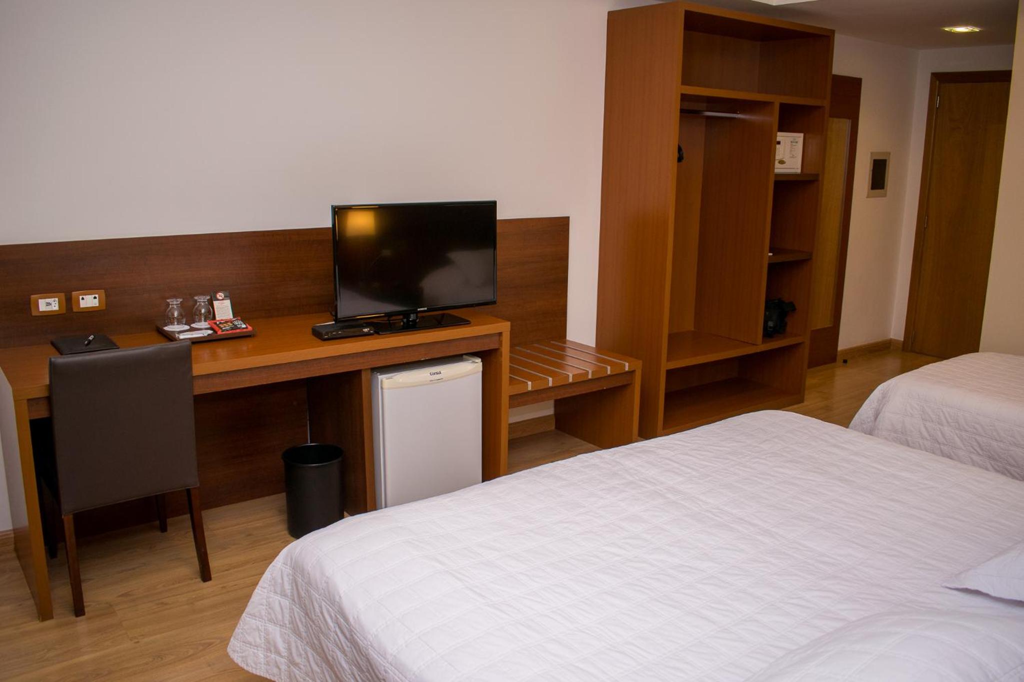 Frigobar continha somente água, faltou um folheto explicativo do funcionamento do hotel