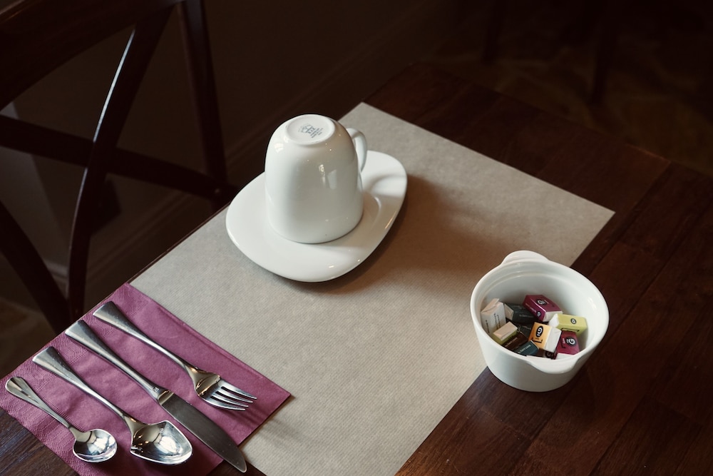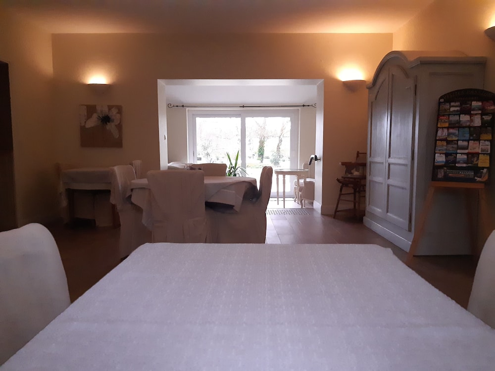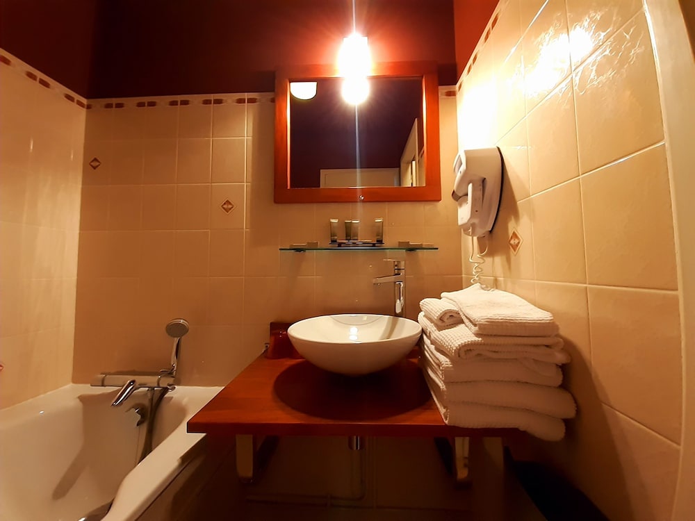 Organisation inhabituelle avec un seul accueil pour 2 établissements (l'hôtel et le manoir) différents, avec principalement 1 seul employé qui fait l'aller-retour entre les deux établissements et qui fait un peu tout tout seul. Du coup, on a le sentiment que la gestion gestion du Manoir, plus prestigieux, se fait au détriment de l'hôtel et de ses occupants. Le tout est légèrement négligé : déco soignée mais datée, du café et un frigo à dispo dans un espace commun. Ambiance entre hôtel d'affaires et gîte ?.... On est livrés à soi-même, aucun personnel à l'hôtel. C'est très déroutant.