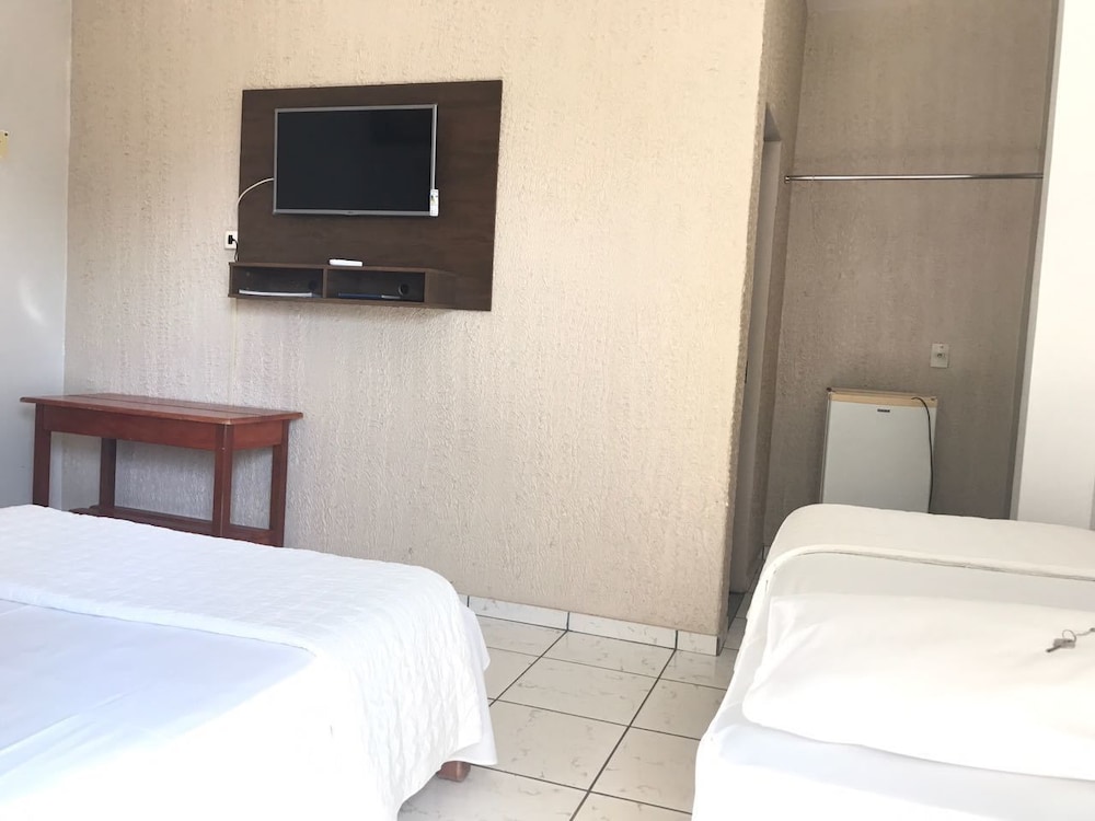 Não condiz com as fotos postadas neste site. O quarto era bem inferior às fotos. Quatros camas e só 2 colchas. Pedi mais e trouxeram coberta grossa para usar no valor de Caceres. Lençóis encardidos. Internet não funcionava. Café da manhã razoável, mas sem nenhum tipo de cuidado em relação à pandemia. Todos pegavam nós mesmos pegadores sem luva e sem álcool gel.