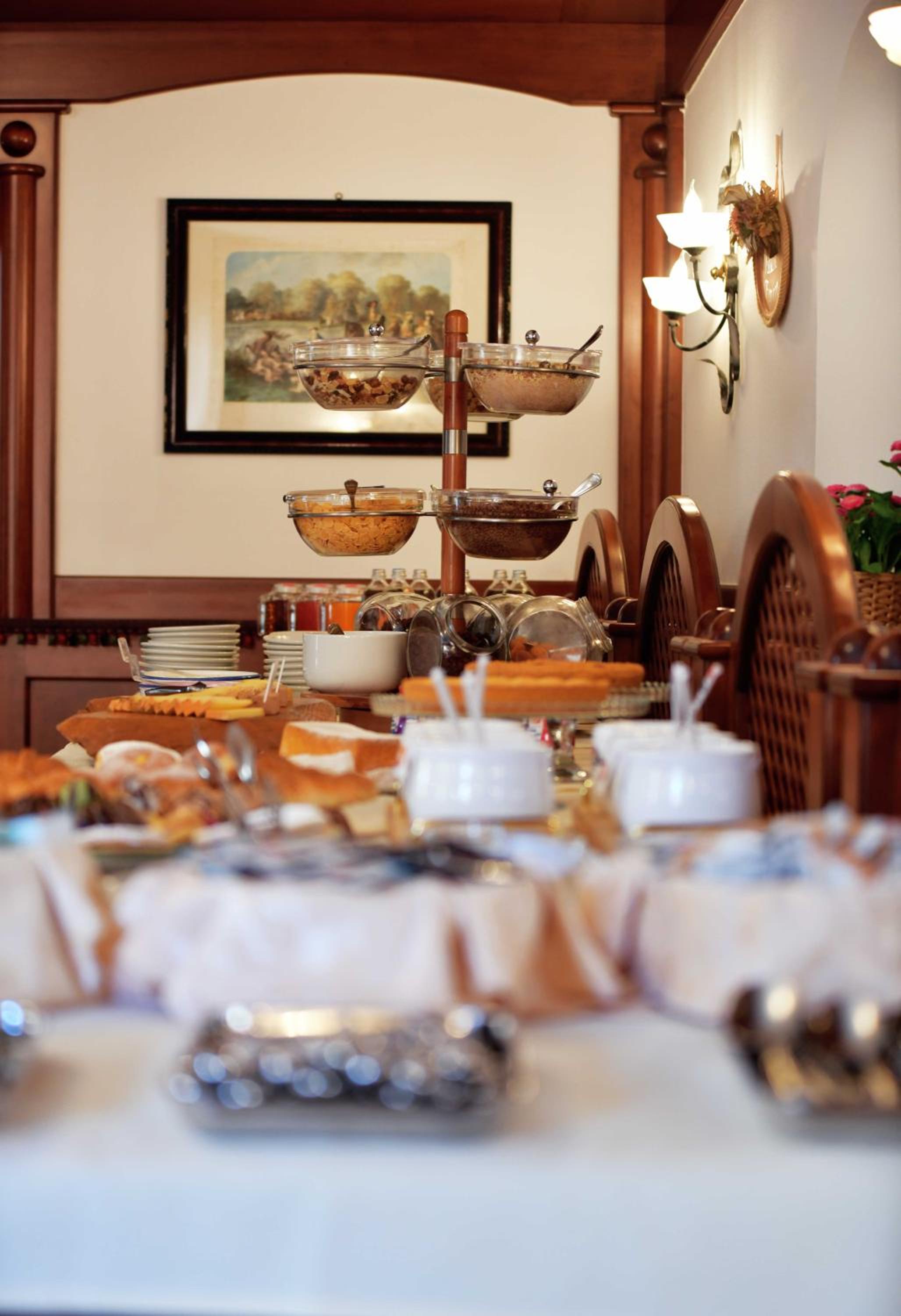 Start your day right with a rich buffet breakfast featuring homemade cakes and savory options. Enjoy a culinary experience without leaving the hotel.