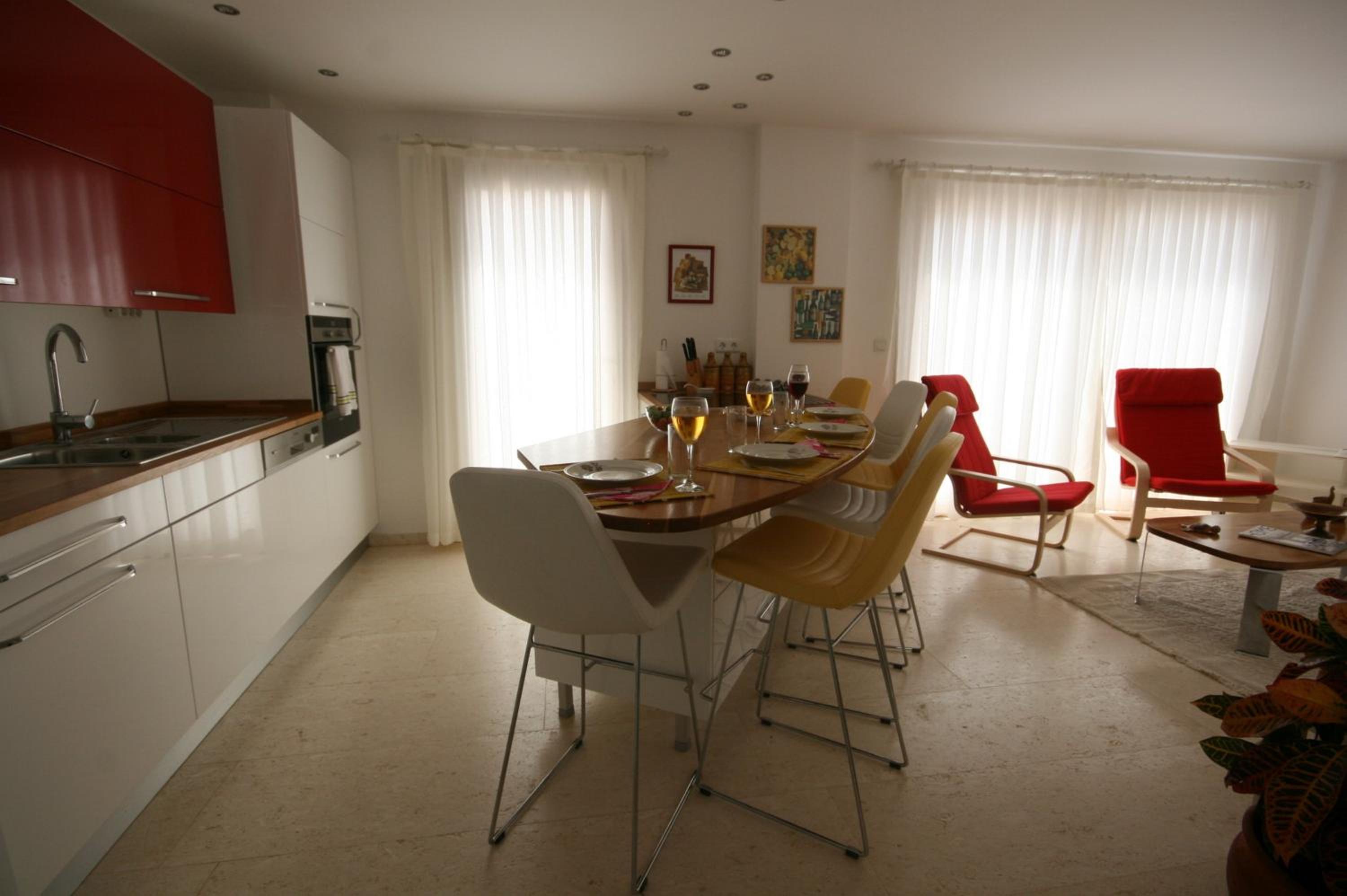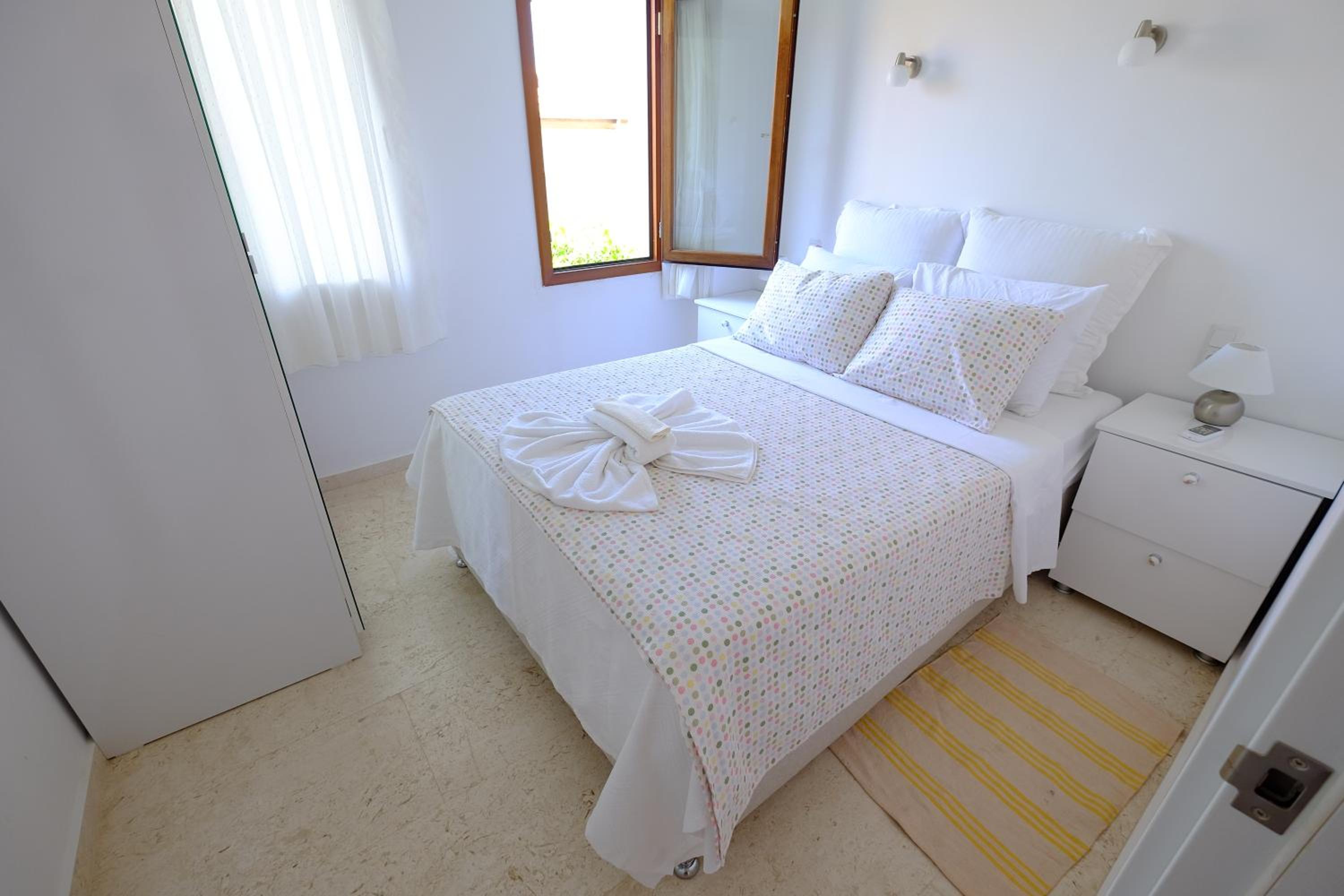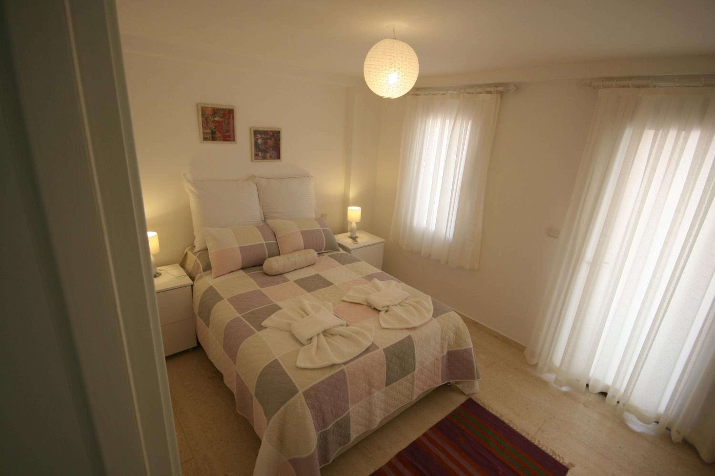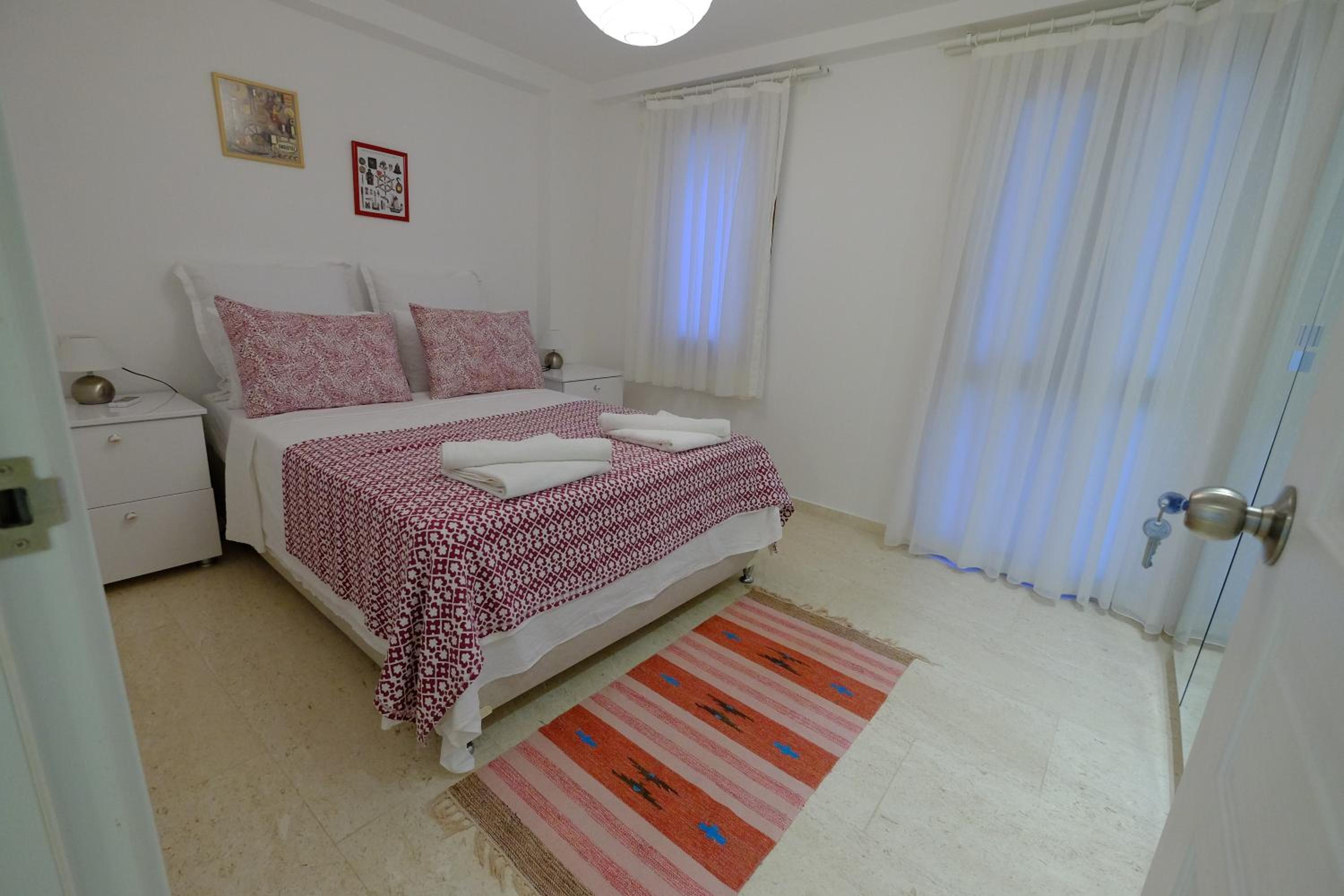 Обычно такие апартаменты для сдачи не делают. Только для себя. Потрясающая комбинация отменной функциональности и утончённого дизайна с вниманием ко всем мелким деталям. Насыщение посудой, бельём, полотенцами, бытовыми приборами и прочим - такое не у каждого дома есть. Расположение выше всяких похвал - в центре шумно гуляющего Калкана, но в каком-то тихом оазисе. Море и порт совсем рядом. Из порта ходят лодки на близлежащие пляжи (от 400 до 600 лир в день). Ресторанов вокруг не сосчитать, какой-то гастрономический рай (только цены в 2 раза выше, чем везде, всё из-за обилия англичан). Тиджен, хозяйка, совершенно прекрасный человек, с которым приятно поговорить в любое время. Каждое утро пекла нам хлеб, вкуснее которого трудно найти. Уезжать не хотелось. Очень рекомендую.