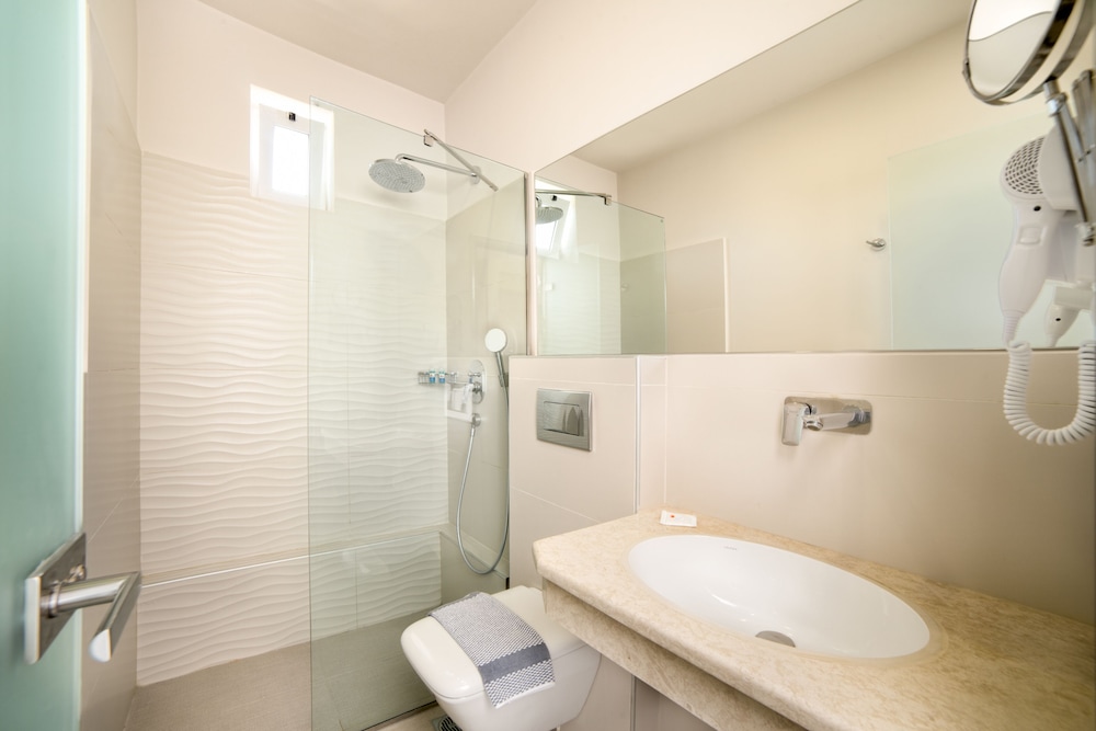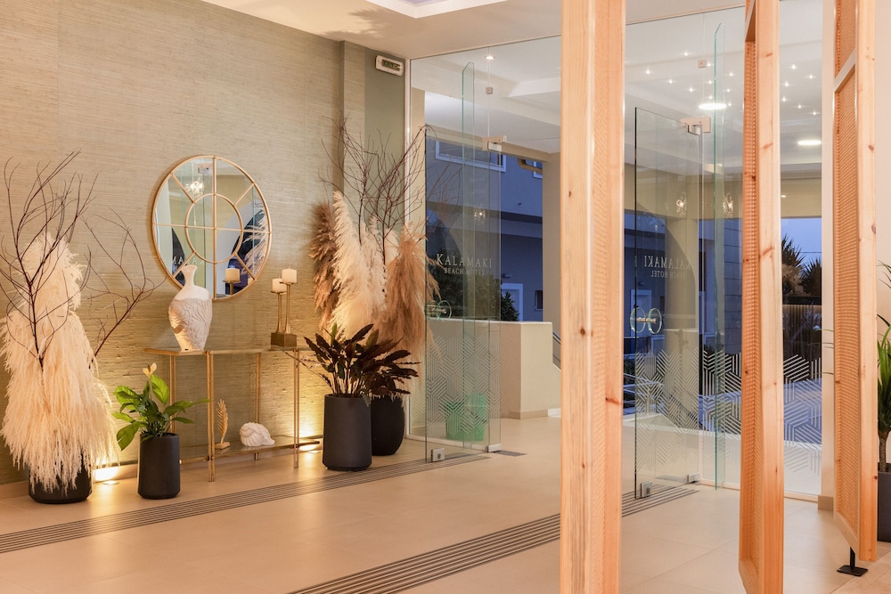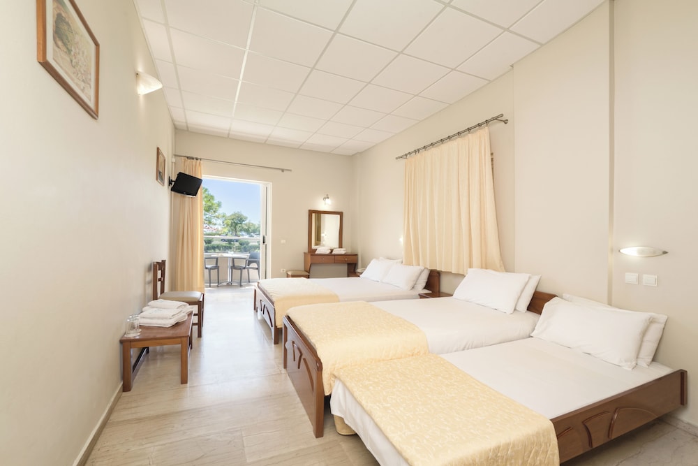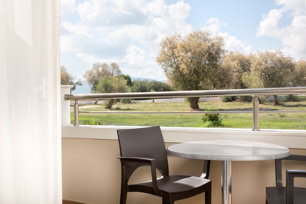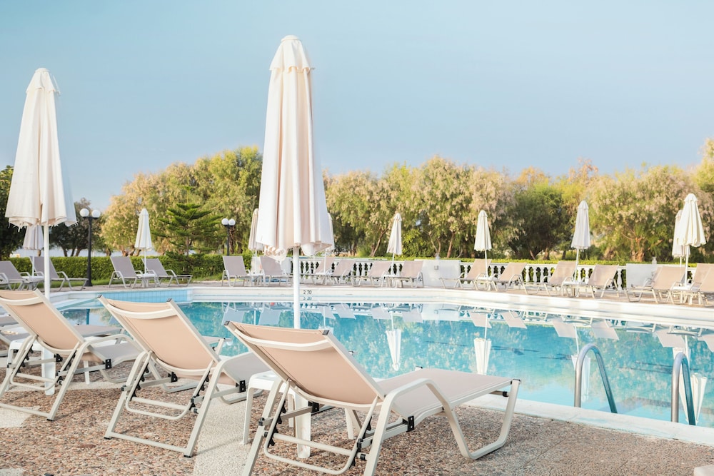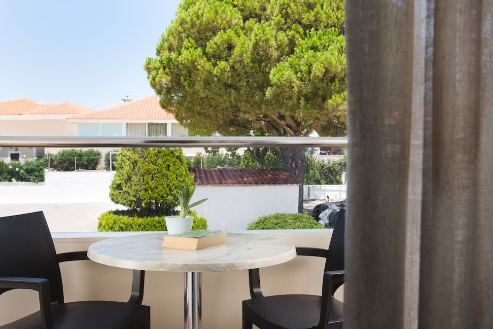 Uitstekend niet al te groot hotel. Volgens mij recent gemoderniseerd. Alle ruimtes en onze kamer waren modern ingericht, netjes en schoon. Airco in de kamer. Geen overbodige luxe. Ontbijtbuffet is goed en er is genoeg keuze. Op het terrein is een eigen zwembad met leuke poolbar waar je ook goed kan eten. 1 minuut lopen naar ligweide met strandstoelen parasols en Taverna recht aan het strand. Ook heel fijn om daar te zitten. Alle restaurants en basr van Kalamaki op loopafstand. Hele rustige oase in een verder wel heel erg toeristische omgeving die vooral is gericht op engelse gasten die veel bier dirnken en van voetbal houden. Landingsbaan van het vliegveld ligt naast het hotel. Elk uur een paarvliegtuigen, maar niet echt storend. Tip voor verbetering: Verse jus bij het ontbijt en koffie- theefaciliteiten in de kamer maakt he helemaal af. Poolbar later sluiten voor eten, bijvoorbeeld om 20.00 uur of het restaurant aan de voorkant aantrekkelijker maken. Was nu wel wat erg rustig daar. Hele fijne vakantie gehad.