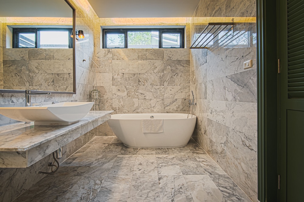 ห้องกว้าง สะอาด ปูนเปลือยมันวาว + วอลเปเปอร์ เข้ากันอย่างลงตัว ห้องชั้น 2 เพดาน สูงโปร่งมาก เตียง นุ่มแน่น มีระเบียง ฟังเสียงคลอง เสียงนก โรงแรม เปิดมา 6 ปี แต่ยังใหม่อยู่พอึควร อุปกรณ์ วัสดุ ในห้อง ใช้ของดีมีคุณภาพ เช่นฝักบัวแบบมีตัวกรองน้ำ เครื่องทำน้ำอุ่น รุ่นออนเซ็นของโตชิบา อ่างล้างหน้าขอ กะรัต