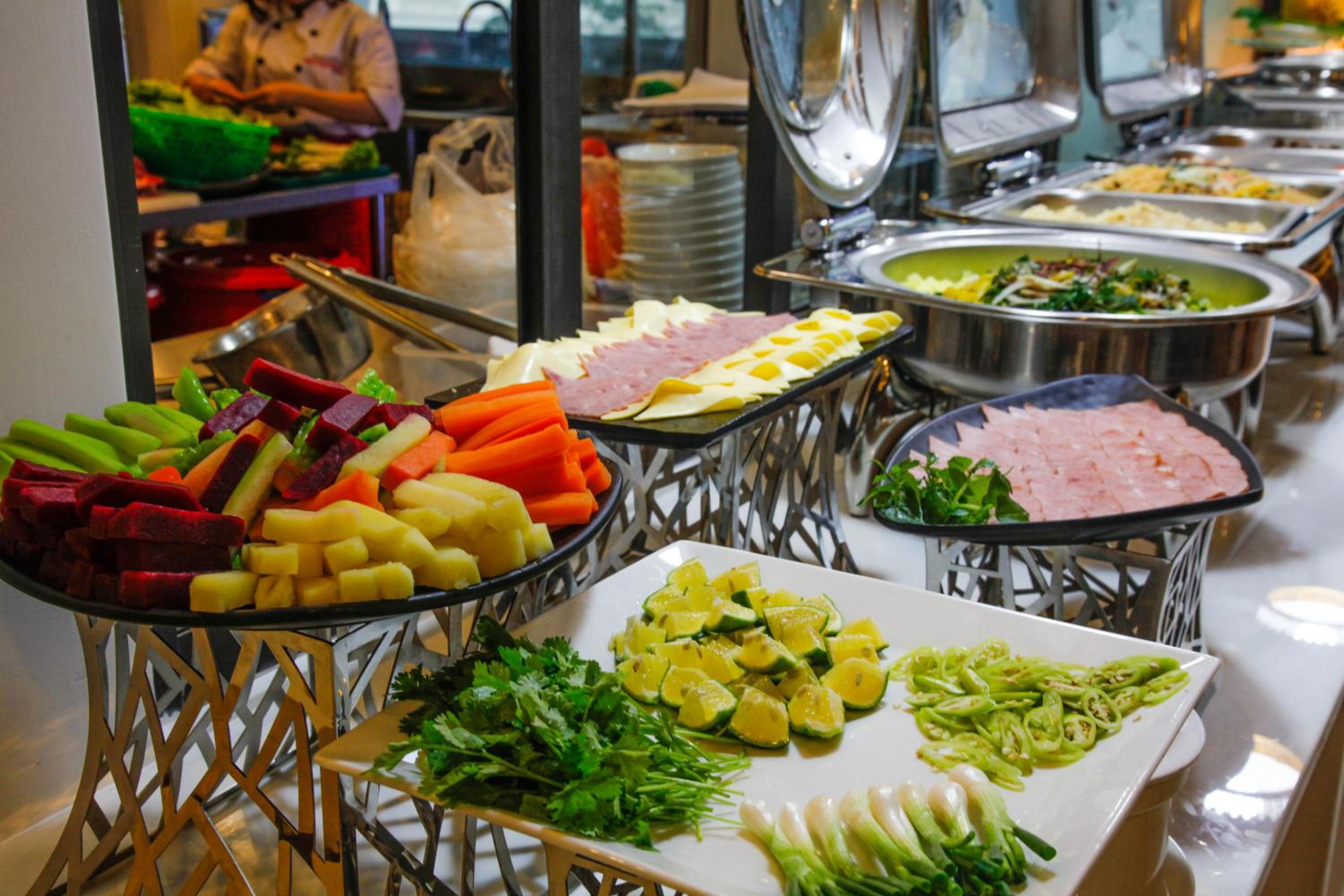 ăn sáng hơi tệ, ít đồ ăn, nhân viên lên đồ chậm, nước dùng bún phở nguội , sáng nay mình ăn tô phở gà nước dùng nguội nên rất tanh. khách sạn cần cải thiện những vấn đề đó thì mình nghĩ là ok