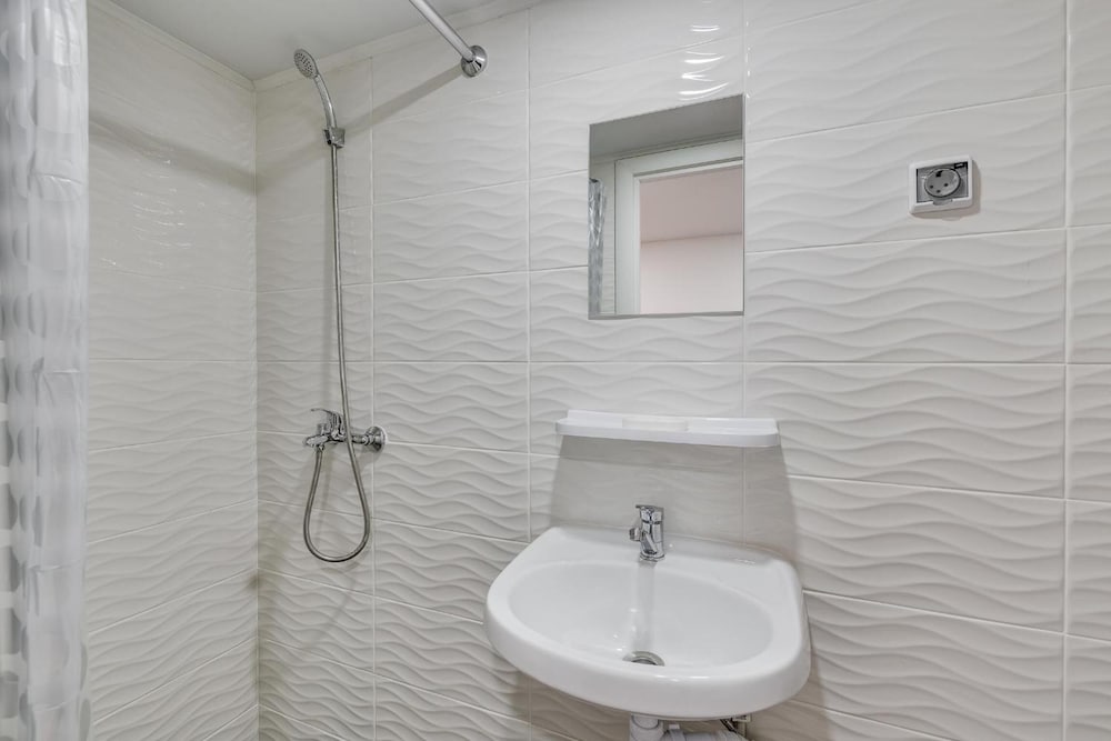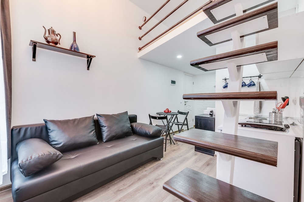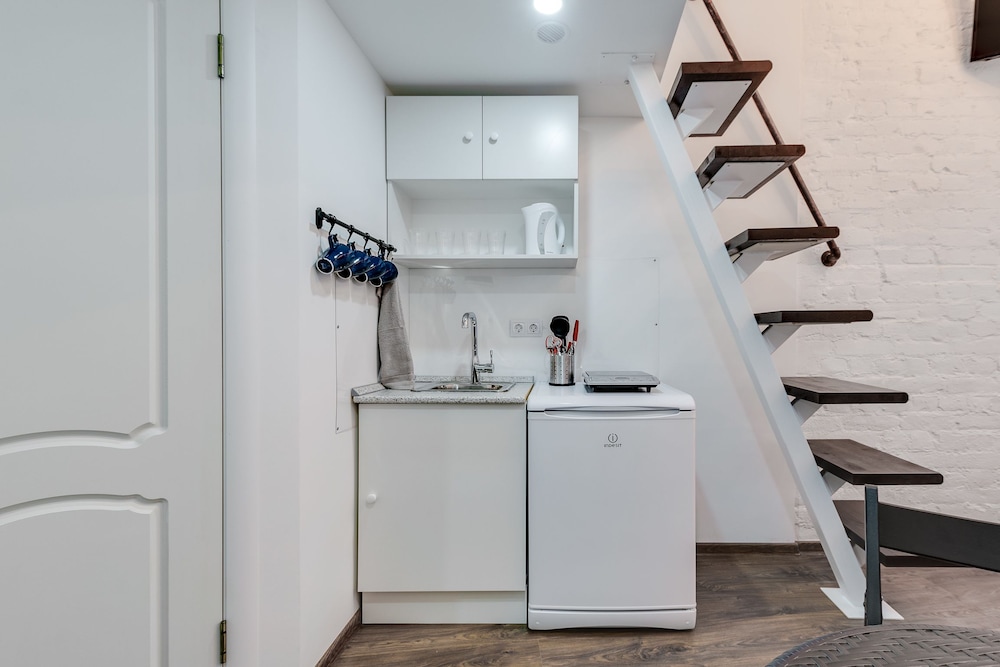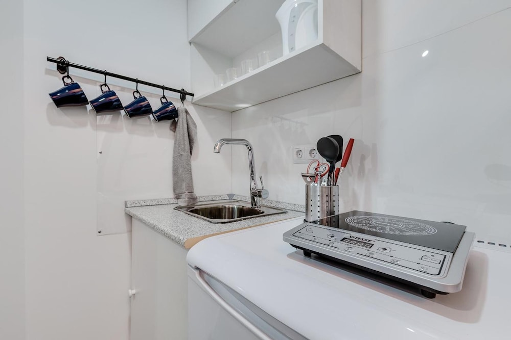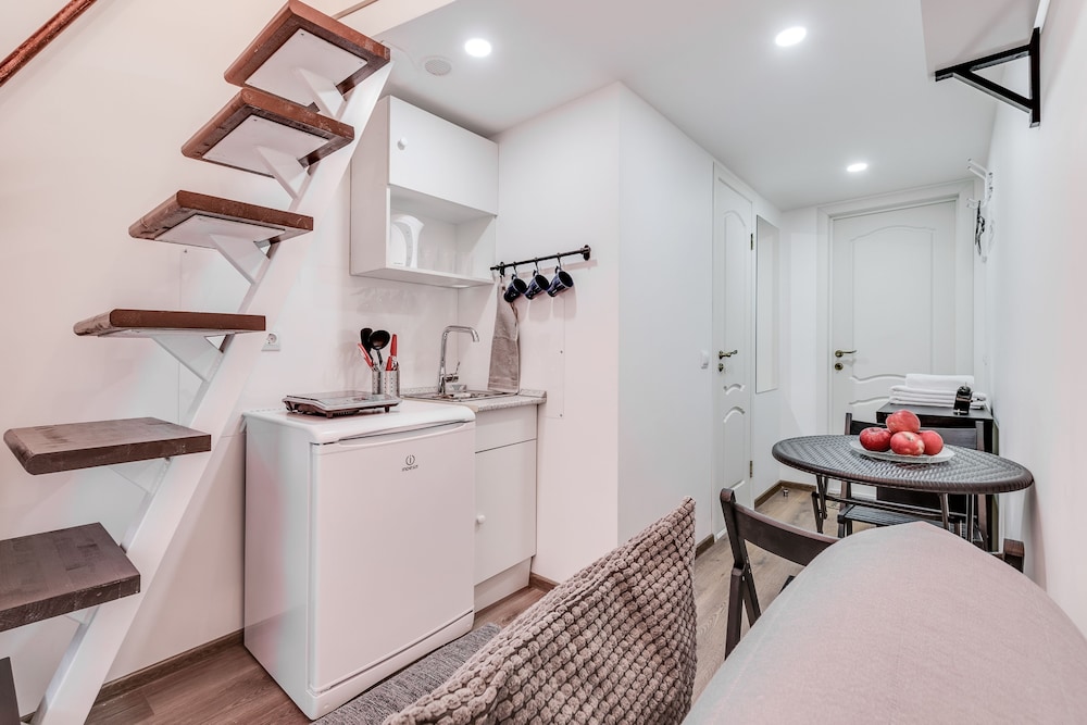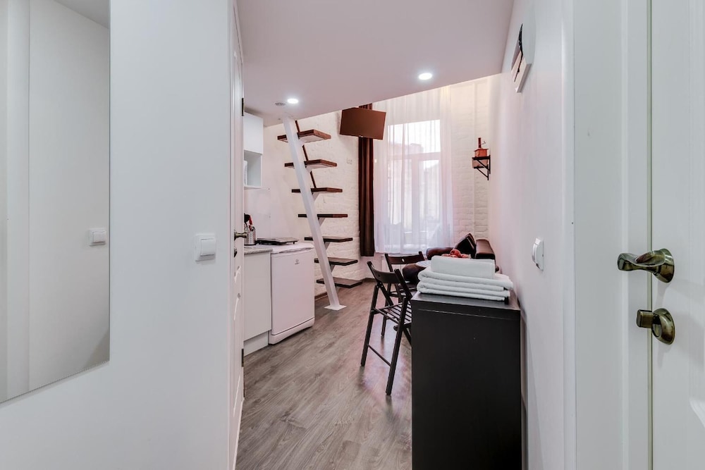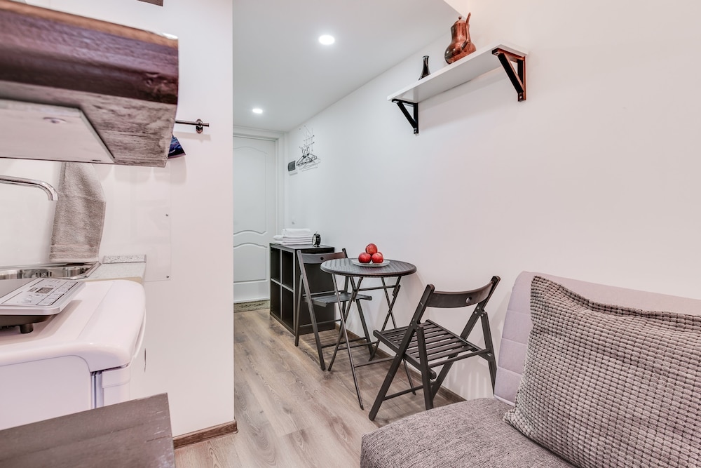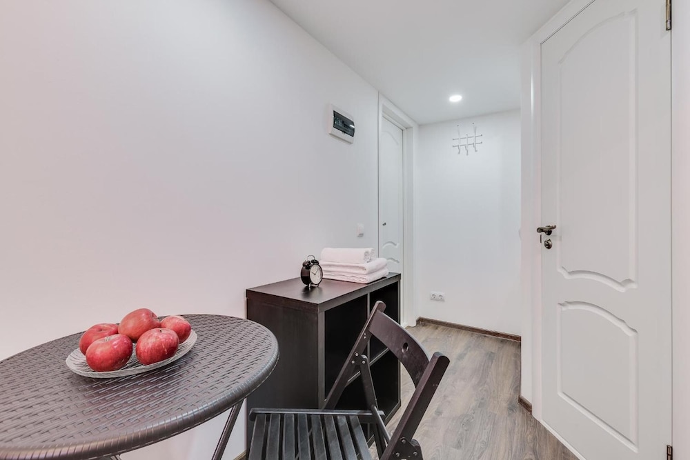 Отличное расположение с множеством хороших кафе и тц рядом. Метро 4 минуты. Внутри номер маленький, на кровать ползти на корточках. Слышимость великолепная! Утром участвовали в семейных разборках, вечером слушали как отдыхают молодожены. Но в остальном все отлично. Есть тапочки, чистые полотенца, чай, множество посуды для двоих.