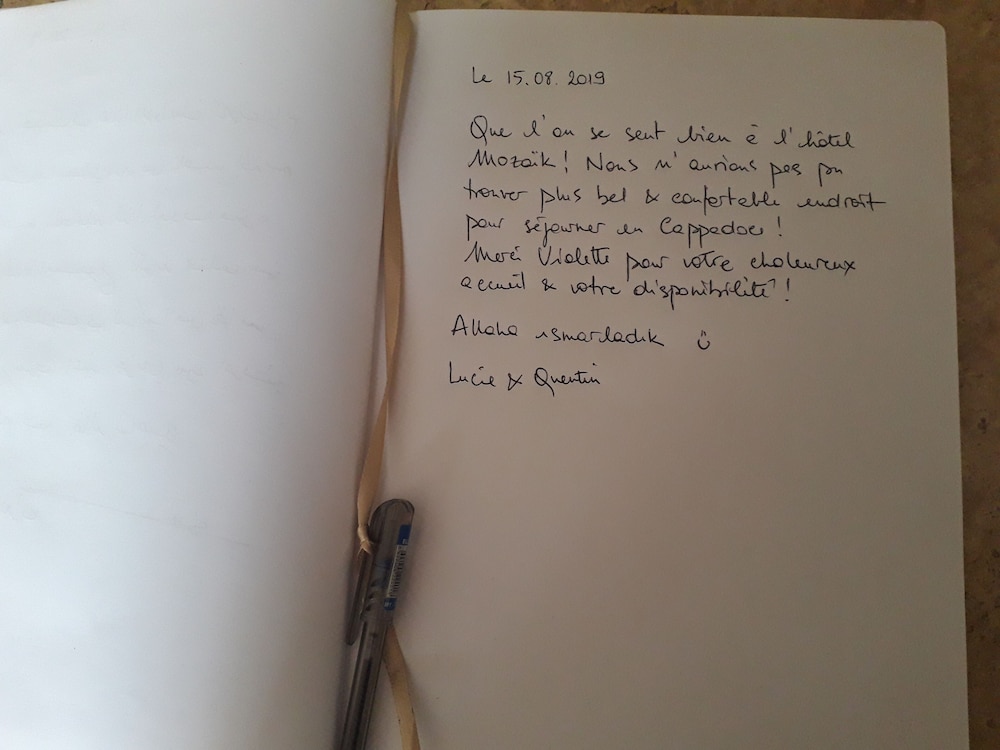 Eşim ile yapmış olduğumuz Kapadokya gezisi sırasında kaldığımız Mozaik Otel son derece şirin ve butik bir oteldi. Otel çalışanlarından Sevil hanım, Güldane ve Fatma hanımlar da sağ olsunlar bizlerle ilgilendiler. Otel işletmecisi Halit Bey ve Sevil Hanım işletmecilik konusunda mükemmeller. Müşterinin velinimet olduğunu düşündükleri belli. Otelde bulunan Türk çalışanlar son derece saygılı ve nezih kişiler. Otelde yaşadığınız sıkıntı olması durumunda Türk çalışanları bulmanızı tavsiye ediyoruz, zira otelde bulunan Fransız hanfendi çok saygılı değil. Onun hatasını telafi etmek için Türk arkadaşlar canla başla çalıştılar. Emeklerine sağlık. Yolumuz düşerse kesinlikle tekrar buraya geleceğiz.