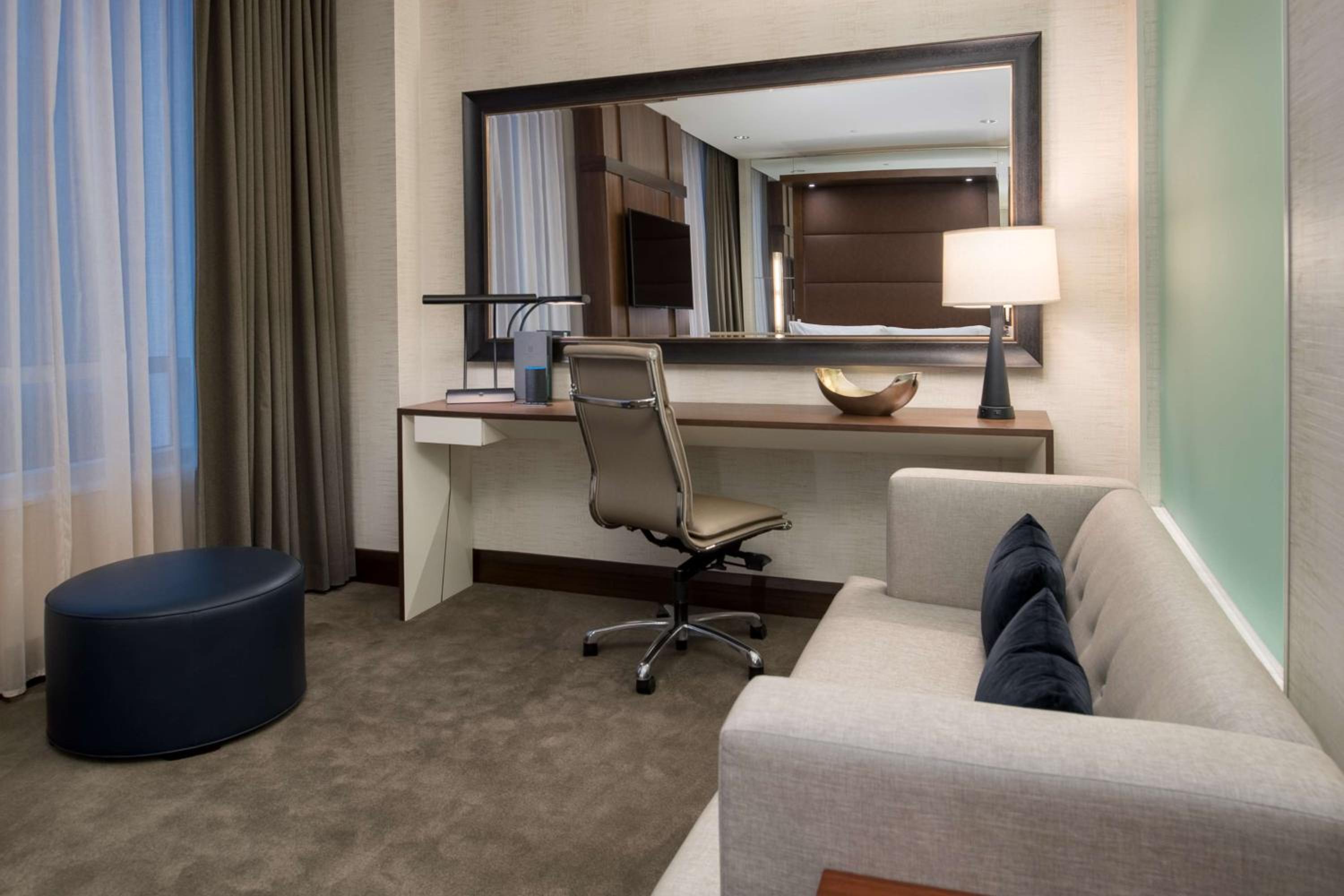 Embassy Suites By Hilton Seattle Downtown Pioneer Square offers elegantly designed guest rooms with modern amenities, including flat-screen TVs, city views, and spacious seating areas. Each room provides a comfortable retreat for guests to unwind after a day of exploring Seattle.
