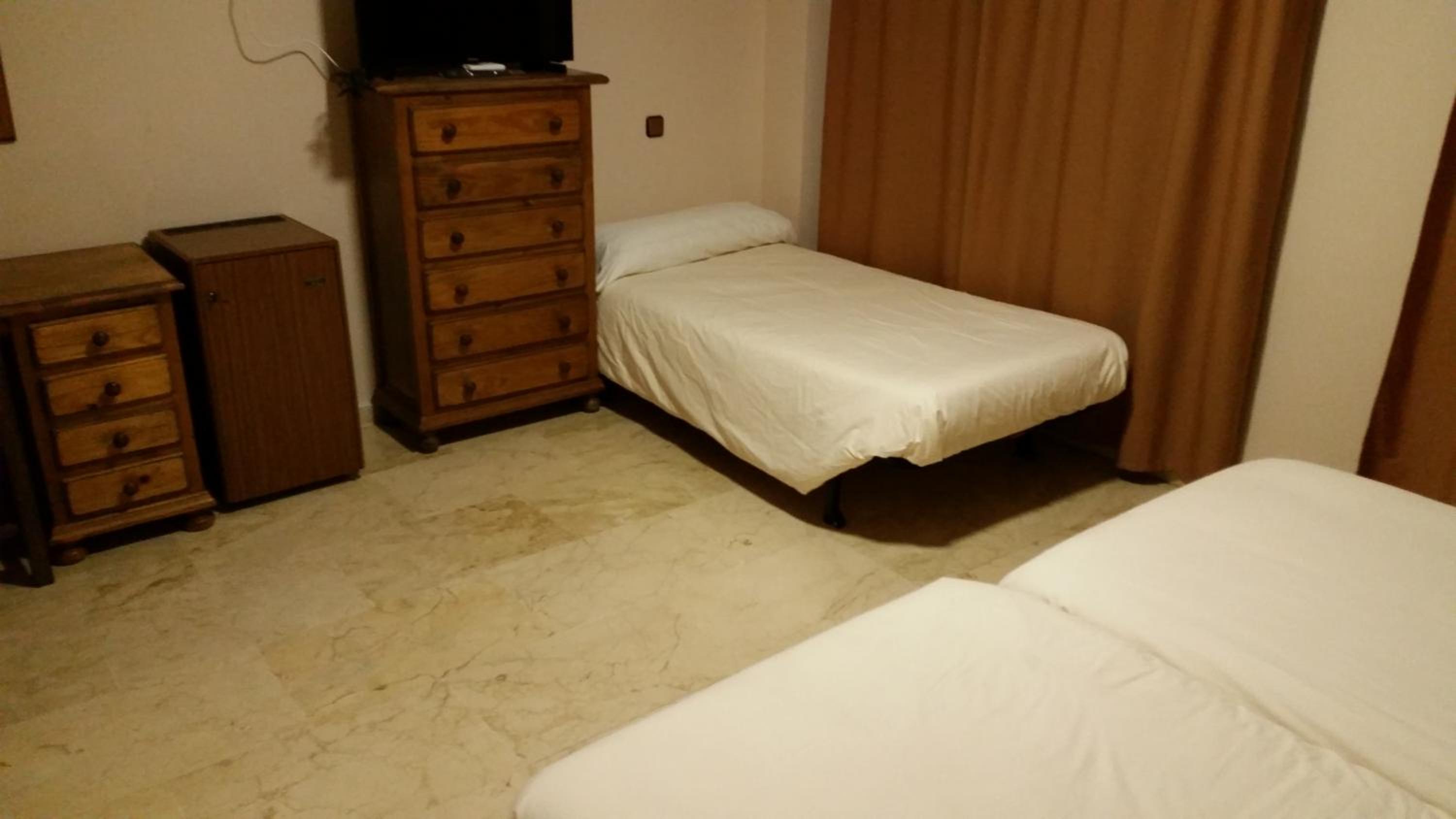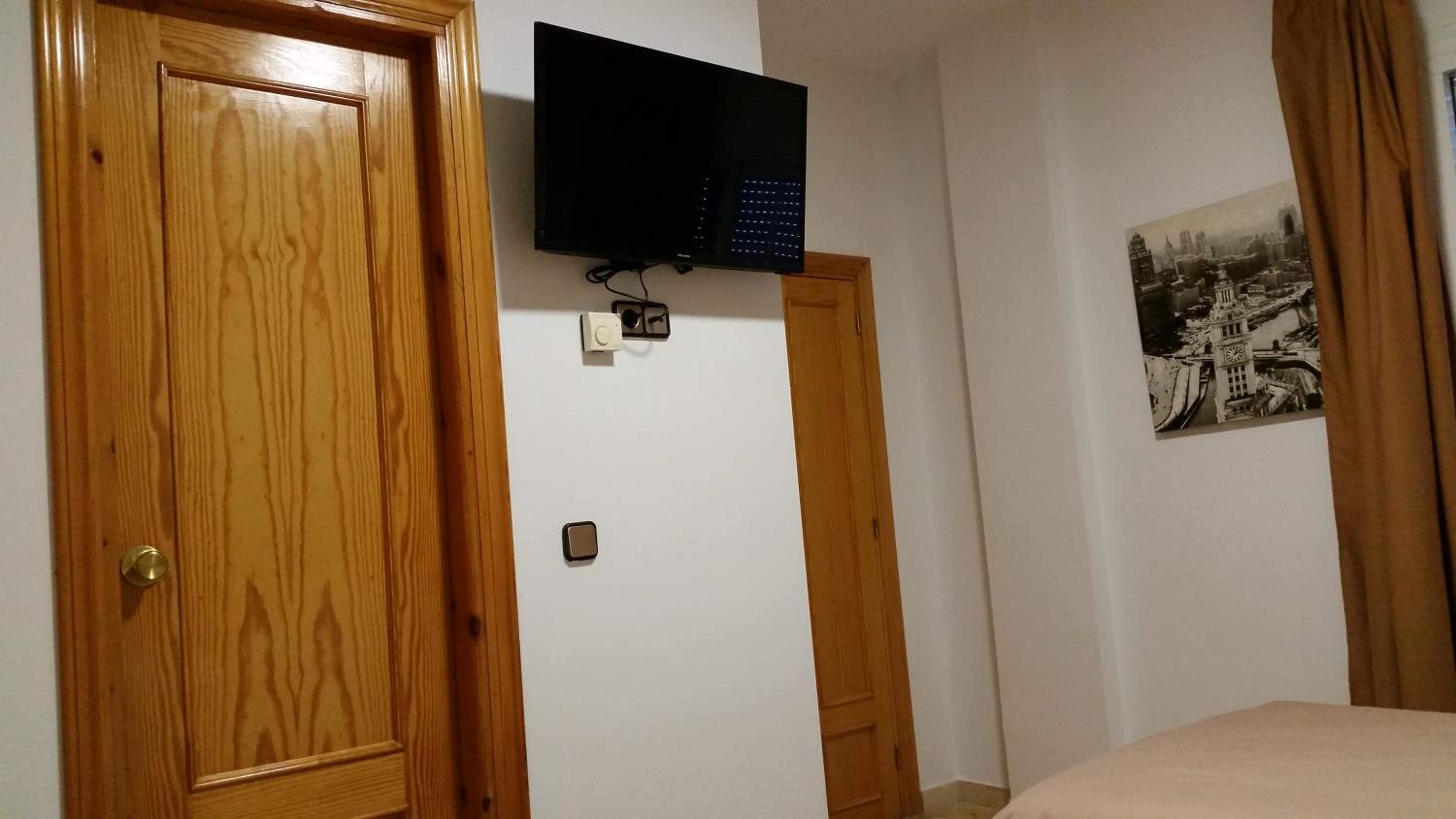 Habitación muy mal aislada. Una corriente de la puerta a la ventana que pasaba por la cama. Persiana rota que hacía ruido con el aire y tuvimos que subirla y así pasaba aún más aire. La manta muy pequeña, no llegaba para dos. Tuvimos que taparnos con nuestra ropa. No tiene párking. Hay que buscar en las calles de los alrededores.