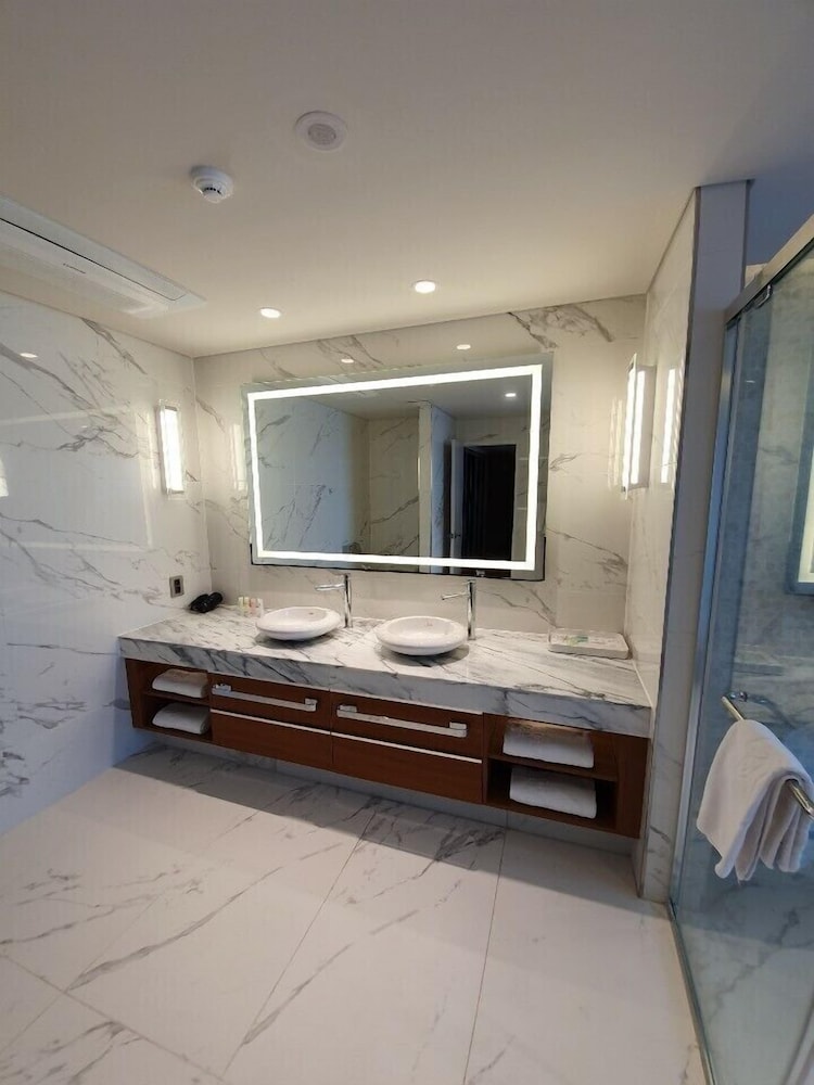 I liked my room a lot I booked it specifically for the jacuzzi hot tub and to relax before my flight at Incheon airport. I wished someone would have helped me with luggage when I arrived also I liked the view from my balcony very close to the beach