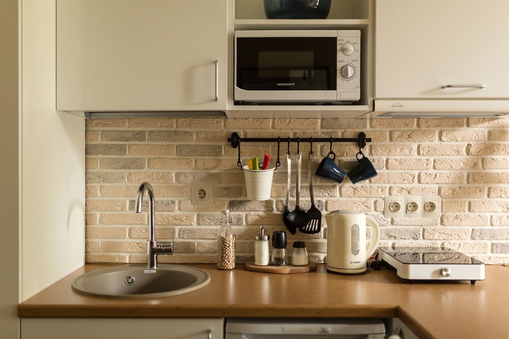 The hotel has an excellent location, just a few steps from the Kremlin, bridge and biggest park. Lots of restaurants and cafés around. Everything looked exactly like in the pictures in Hotels.com The room is small but the bed super comfortable and the mini kitchen is really helpful. We spent 2 nights and we had no housekeeping (we do not know why). We had contact with 3 different people at the front desk: the one with the check in was excellent and spoke fluent English. The second one, no English at all. The one for the check out spoke a little English, enough for explain where to leave the luggage between our check out and the time of our train. However she did not allow us to use any restrooms facilities... So they need some training in customer services.
