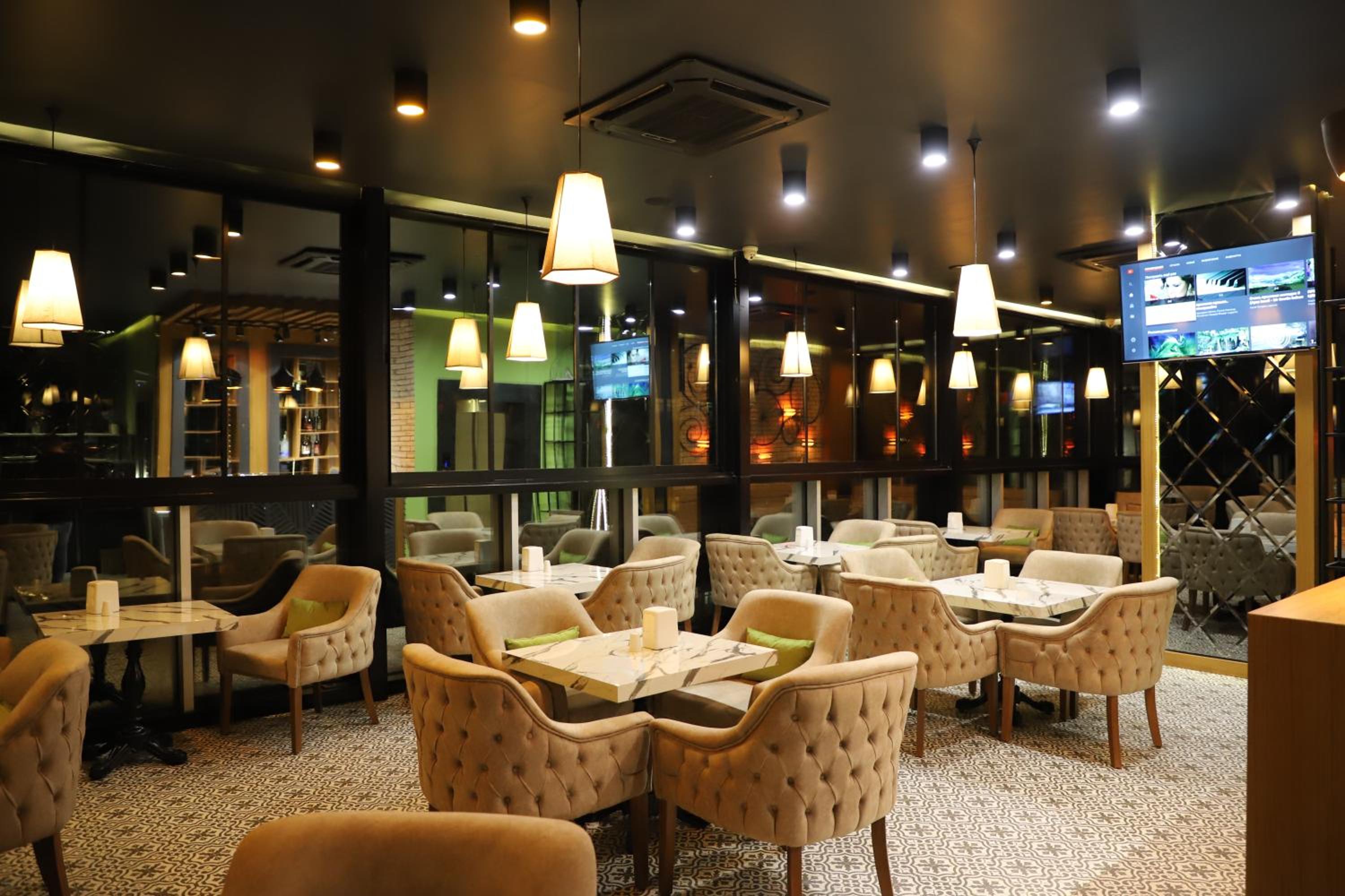 Завтрака не было ,тишина в отеле ,чисто ,интернет хороший ,стены темное стекло ,вид удовлетворительный ,рядом школа ,слышны радостные голоса детей ,рядом кафешки ,банки