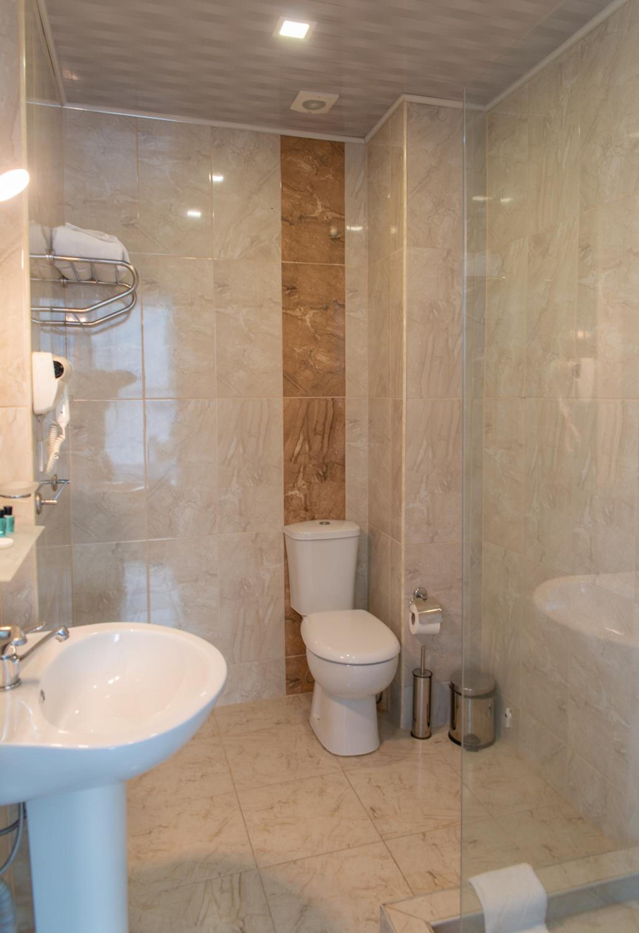 As for the cones I can mention the old floor cover and shower. Also quite simple breakfast.