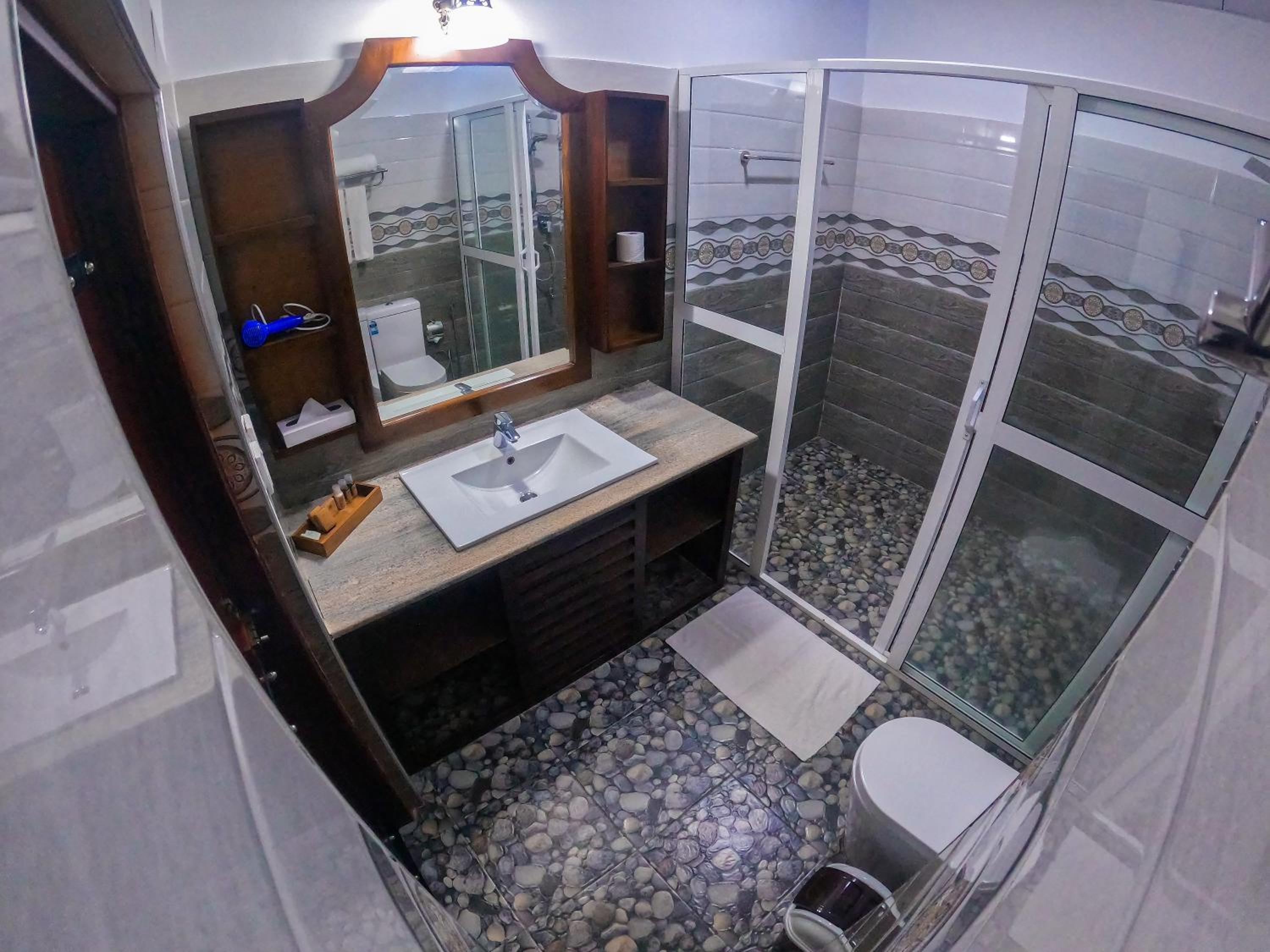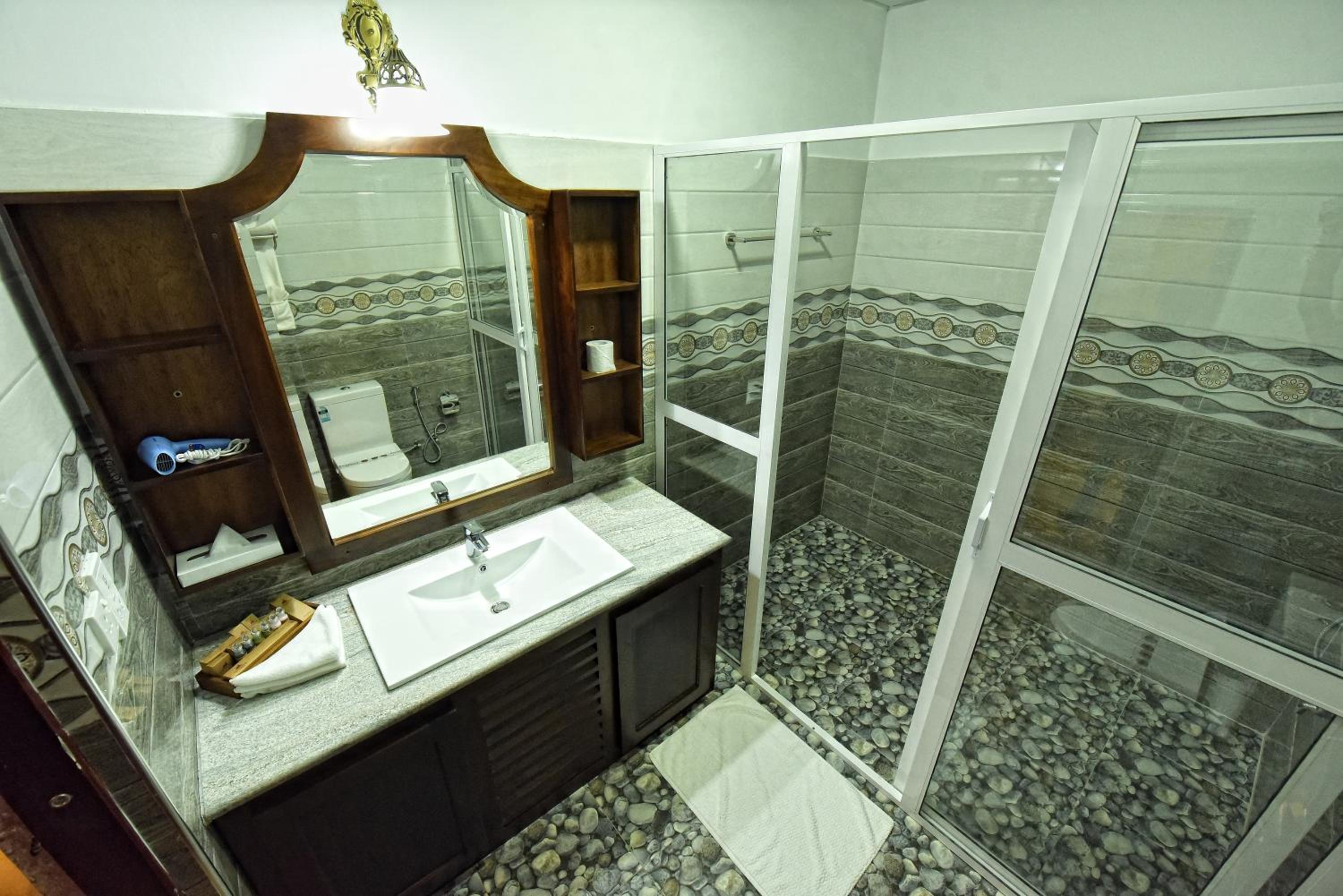 Indulge in comfort and style in our air-conditioned rooms, each equipped with a flat-screen TV, plush bedding, and a private bathroom with premium bath amenities for a relaxing stay.