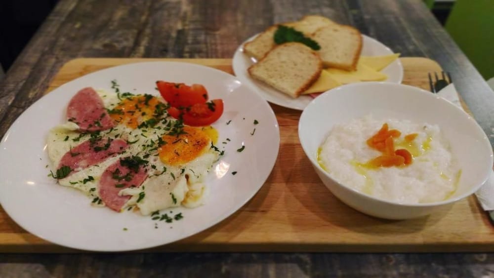 7am前の到着で、フロントには、ロシア語しかできない叔父さんがいた。親切に部屋を用意してくれて、となりのレストランで朝食も出してくれた。