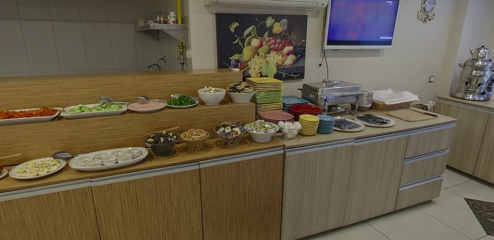 Mekan olarak konum olarak gayet iyi denize ve meydanina yakın önünde ana cadde geçiyor yoğun olmasına rağmen yalıtım iyiydi sesten rahatsız olmadık . Odada şampuan kulak çöpü sabun bunlar mevcuttu. Balkon yoktu fakat gerekde duymadık. Oda genişliği sevdim biz iki çocuk iki yetişkin olarak konakladık memnun kaldık . Kahvaltı açık büfe yeterliydi