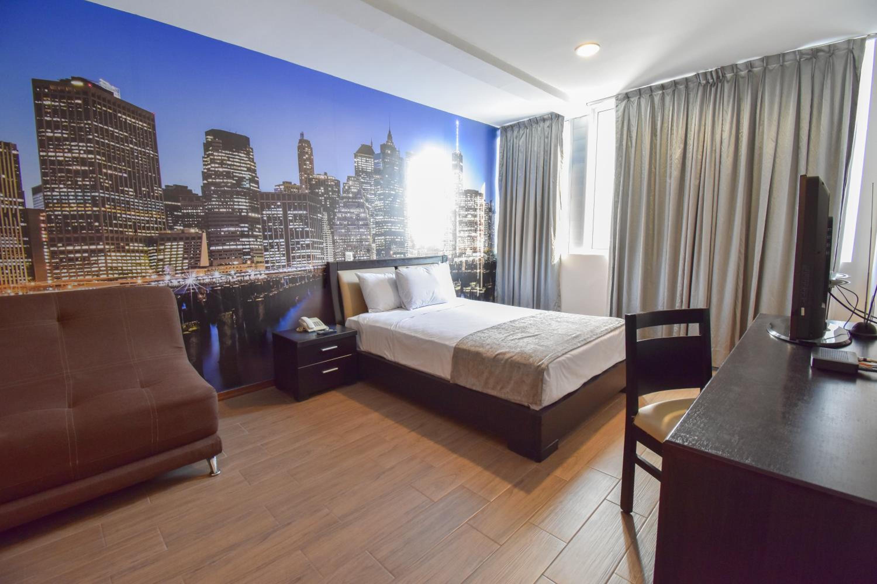 The 3-star hotel offers air-conditioned rooms with modern amenities including a flat-screen TV, safety deposit box, and private bathroom. The cozy seating area in each unit provides a relaxing space for guests to unwind after a day of sightseeing.