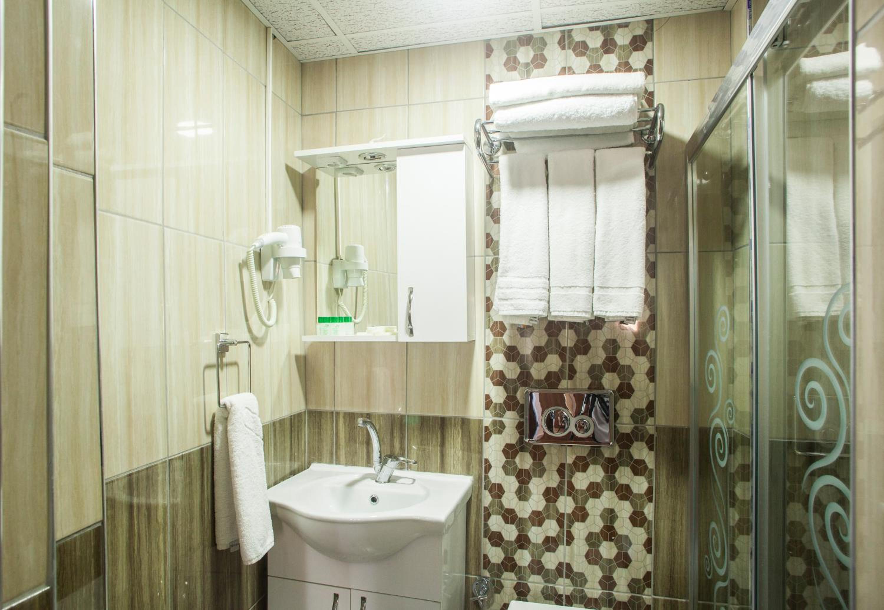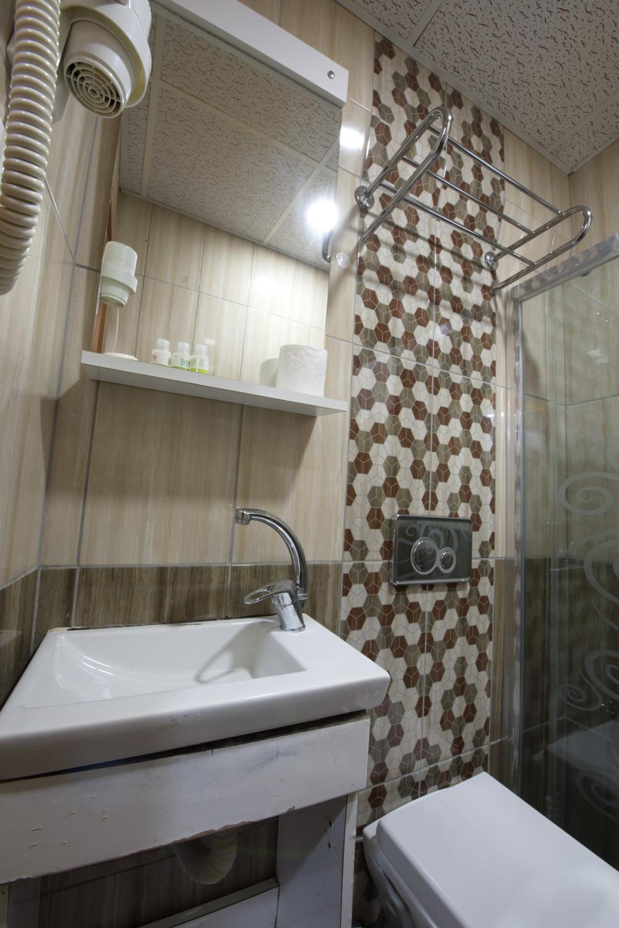 Hotel wymaga remontu. Zadbania. Grzyb w łazience na fugach, na suficie, nieprzyjemny zapach z kanalizacji, szpary pod drzwiami do pokoju, wszystko z korytarza było słychać. Zardzewiała półka pod umywalką. Bardzo zużyte meble. Niedziałająca jedna z części prysznica, uszkodzona kabina. No i zdecydowanie czystosc do poprawy. Bardzo rozczarowana byłam, bo zdjęcia na booking kompletnie nie odwzorowują rzeczywistosci. Łóżko miało bardzo twardy materac.