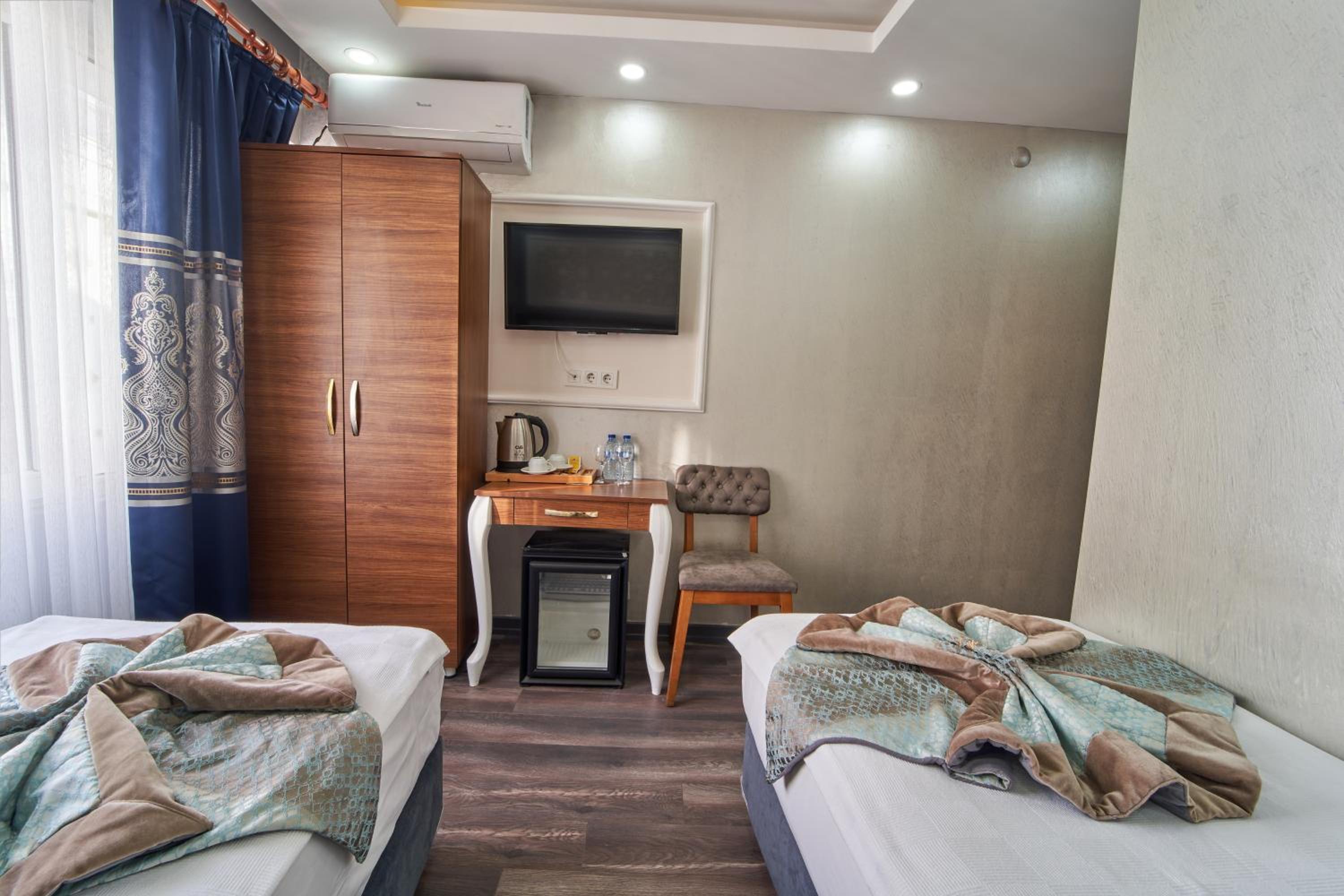 Recently renovated, the rooms at Sultan Hotel provide a cozy retreat with tasteful decor, parquet floors, and essential amenities like satellite TV and free Wi-Fi.