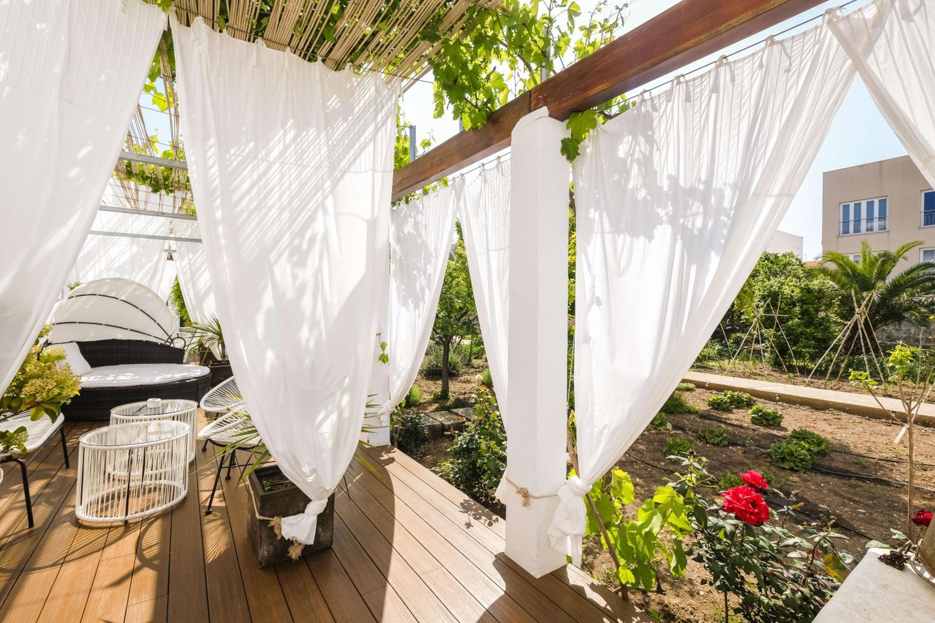 El jardín y la ubicación del hotel.